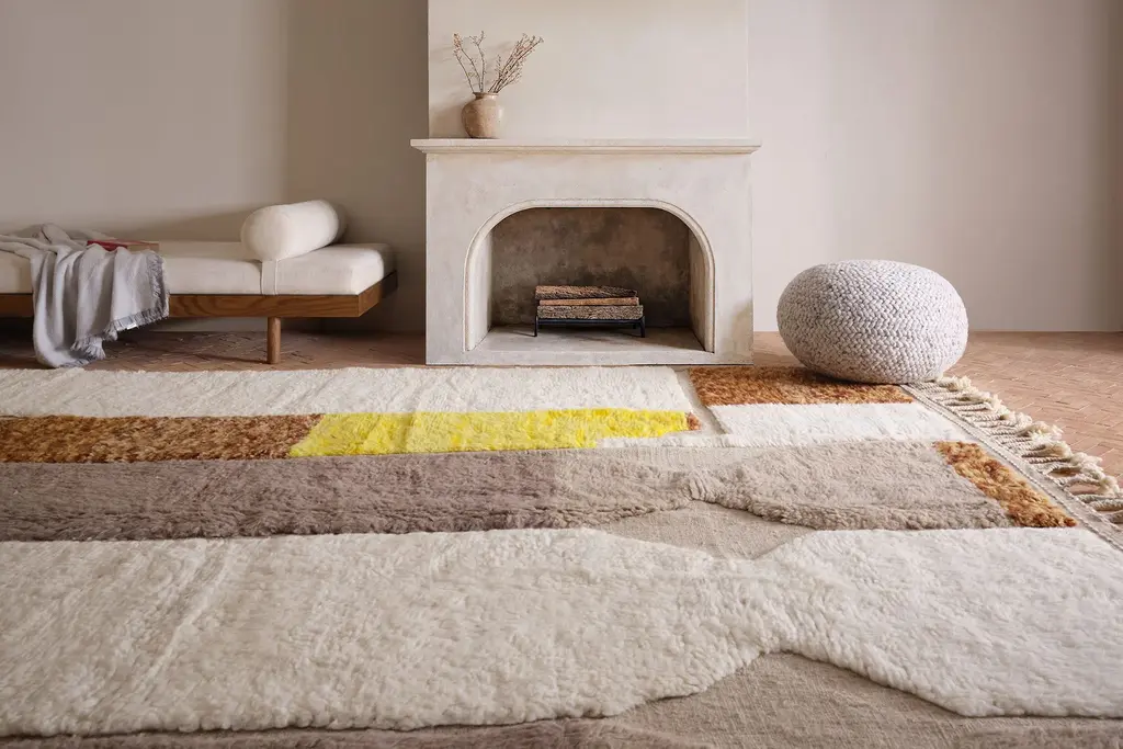 Our Moroccan pieces are each one-of-a-kind. Much of our collection was woven between 30 and 100 years ago, and curated by us. Other rugs in our collection are fresh off the loom and made with traditional techniques. Moroccan rugs don’t come with a key. As with any painting or poem, their motifs have many subjective interpretations. Originally made for personal use, these rugs took months to weave, documenting a shifting tide of events and emotions in the weaver’s life.