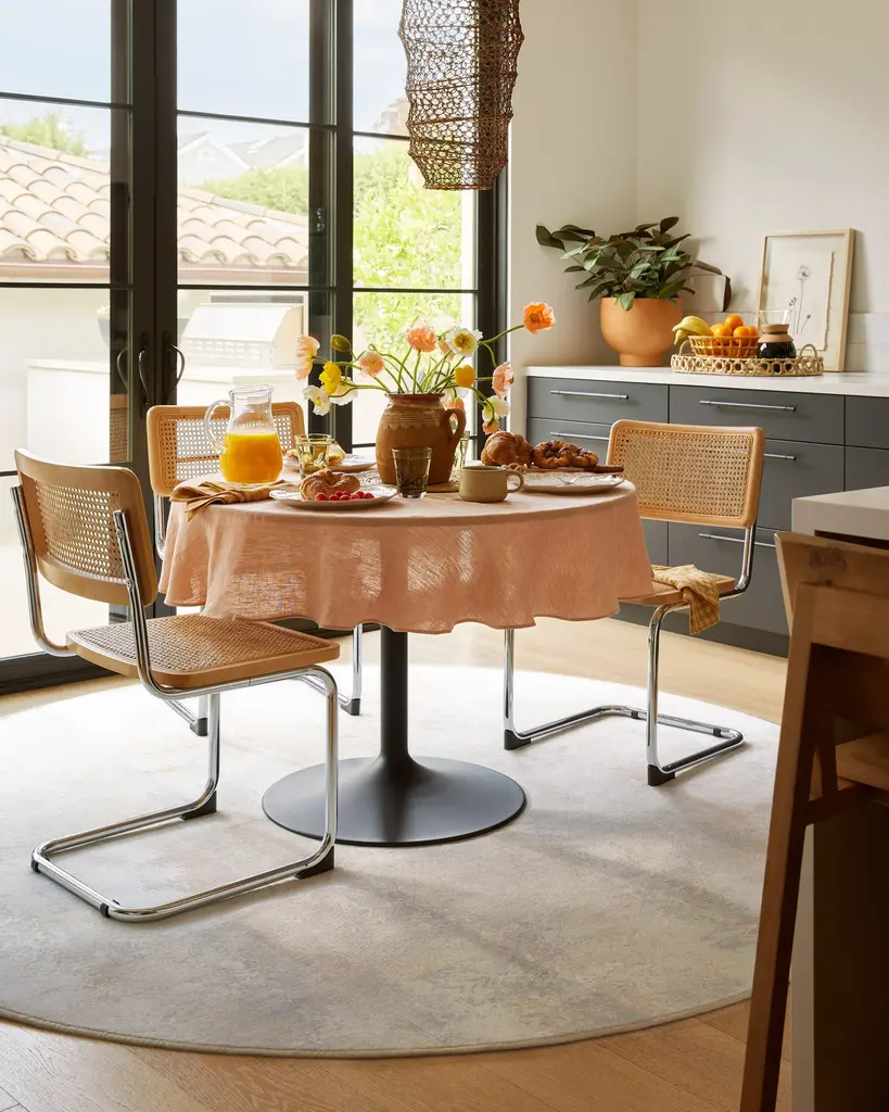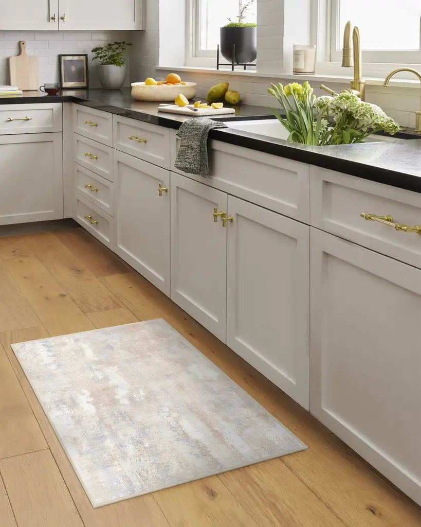 Inspired by the arrival of warmer spring days, our Alister Ivory & Natural Rug. features soft, layered colors that create a beautiful texture. Pops of soft gold mix with neutrals to give this style calmness and warmth. Water-resistant, stain-resistant, and machine-washable. Rug colors may vary slightly according to your device and the lighting in your space.