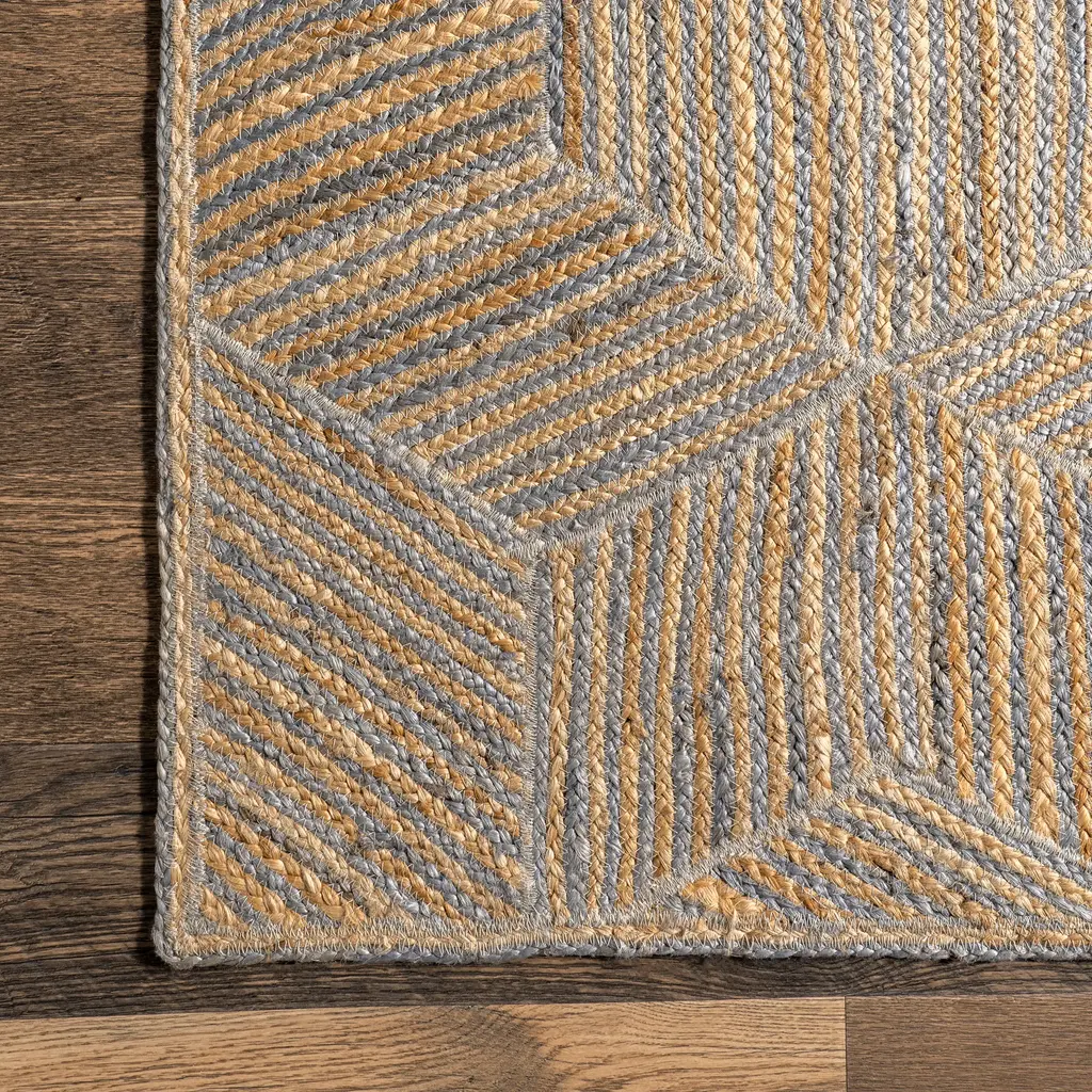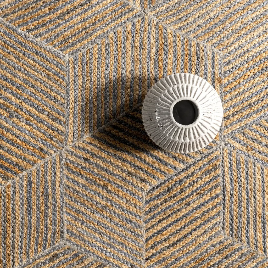 Alisun Jute Hexagon Tiled Rug | Blue - 4' X 6'
