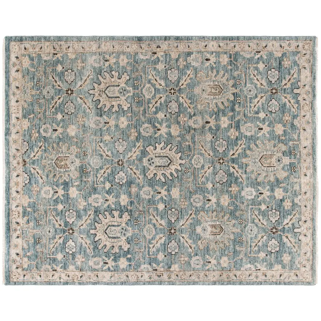 Indian artisans hand-knotted this low-pile rug of New Zealand wool, prized for its softness and durability. Its been given a gentle wash to lend it the warmth of a cherished heirloom. Inch-long fringe adds to the appeal. A rug pad is recommended to help prevent slipping and extend the life of the rug.