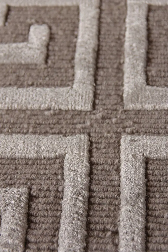Hand-knotted and hand-trimmed using New Zealand wool and silky viscose, this sophisticated rug features a raised allover design in low-contrast neutrals with a textural high-low pile. We recommend a rug pad to extend the life of your rug and keep it securely in place.