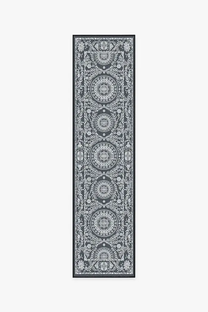 Almana Black and White Rug has timeless appeal. This classic rug design uses floral elements and hand-drawn dots to add depth and interest. Neutral tones of grey and pearl make this rug beautifully versatile.