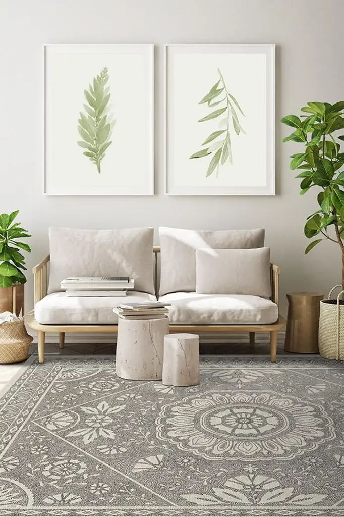 Almana Black and White Rug has timeless appeal. This classic rug design uses floral elements and hand-drawn dots to add depth and interest. Neutral tones of grey and pearl make this rug beautifully versatile.