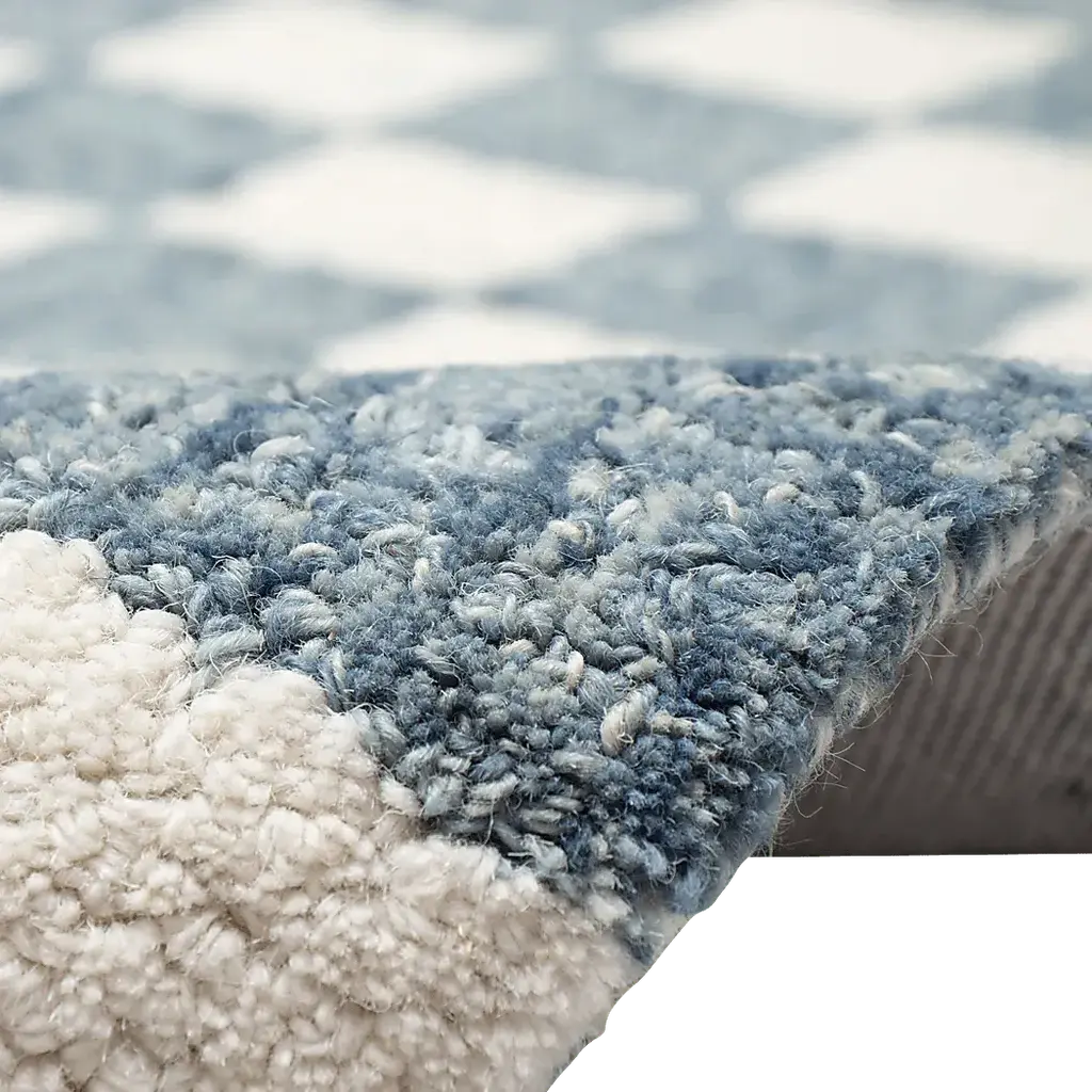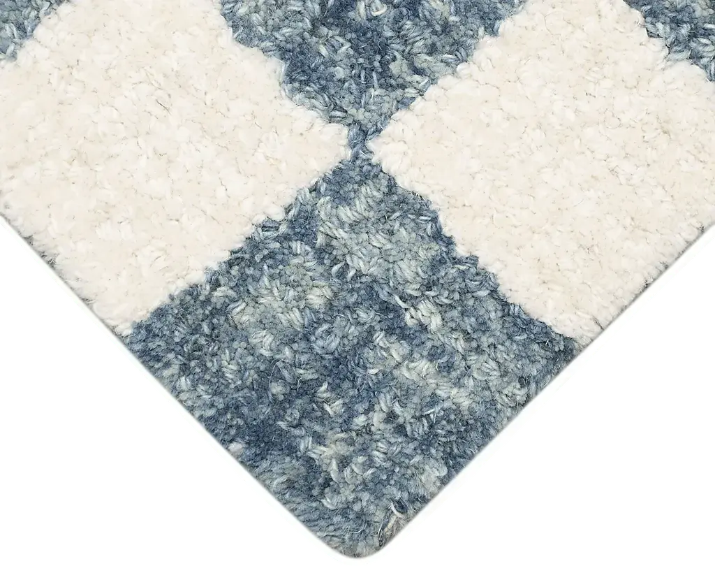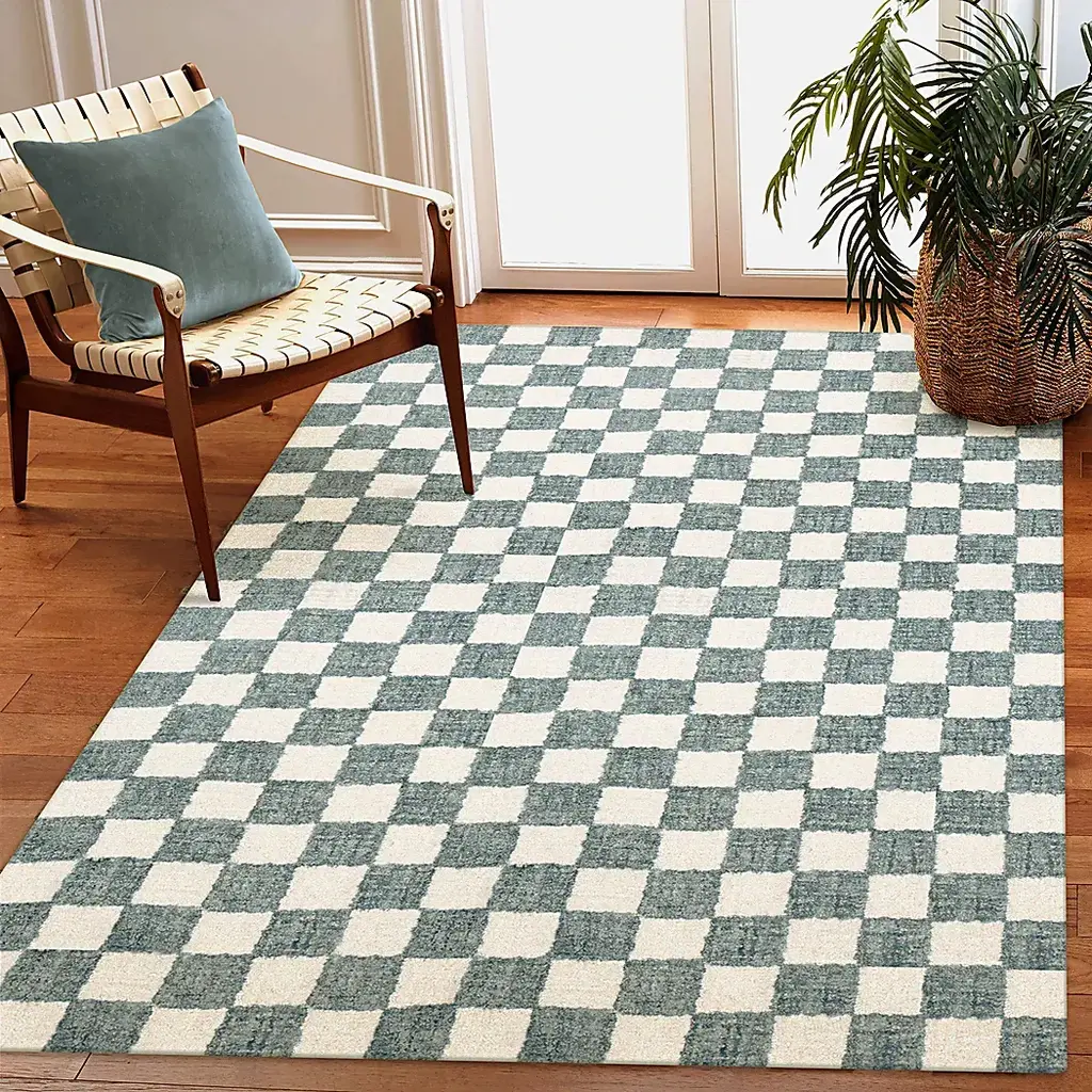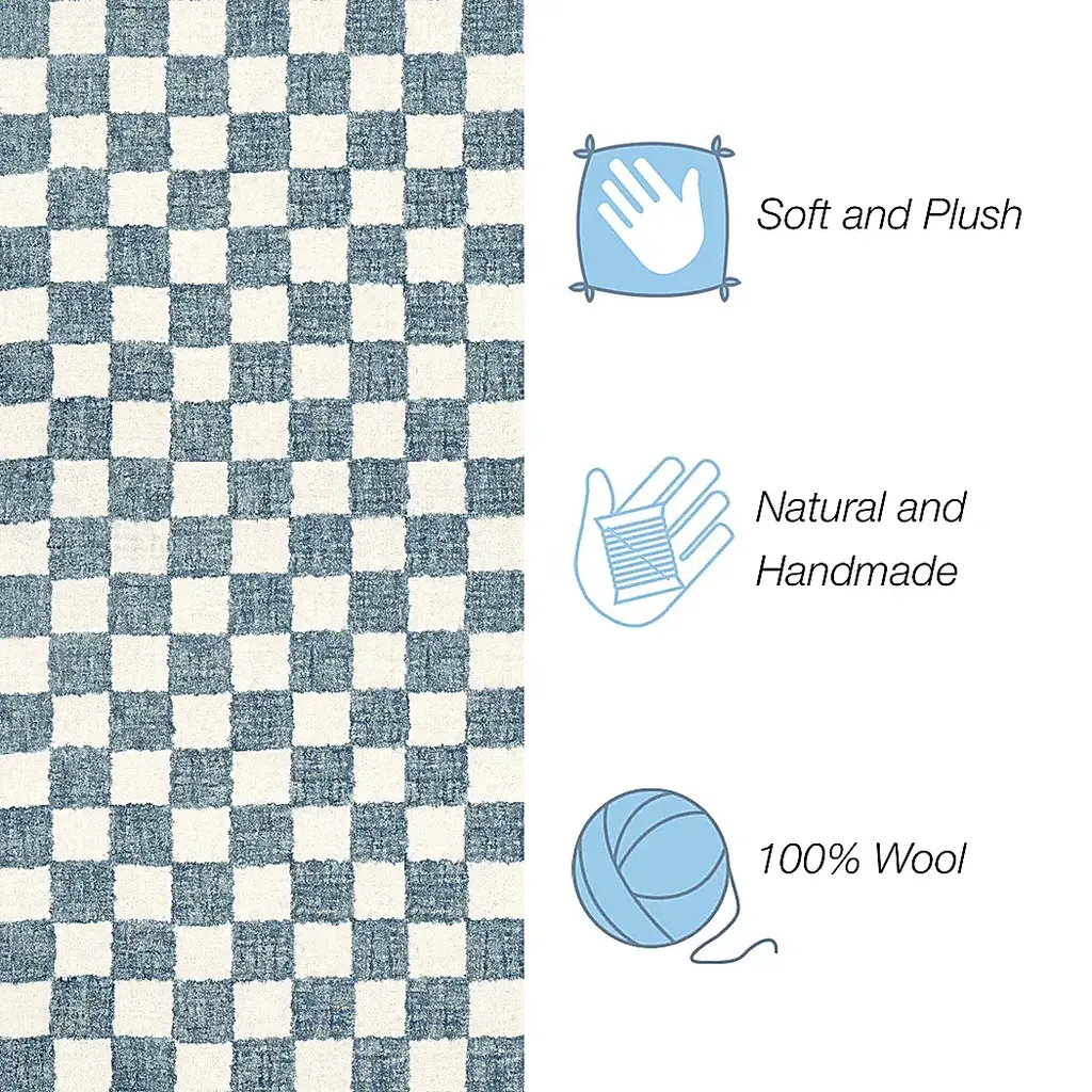 The Almora squares design features a geometric motif and modern style in a ivory and green palette. Handmade from 100% wool, the subtle color blending and plush feel adds warmth and interest to your living space. Vacuum regularly. Clean spots with dry powder cleaner according to manufacturer instructions. Periodic professional cleaning is recommended. The use of a rug pad under the product is recommended.