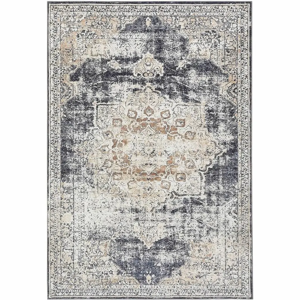 A royal flare from the days that rugs lined the castles in Persia, this Alora Décor Swagger Medallion Rug will add gorgeous designs of old to your transitional style décor. Power-loomed in contrasting neutral ivory and taupe against deep black and Grays from our exclusive heat-set polypropylene Rizlon yarn, this rug is soft to the touch and durable.