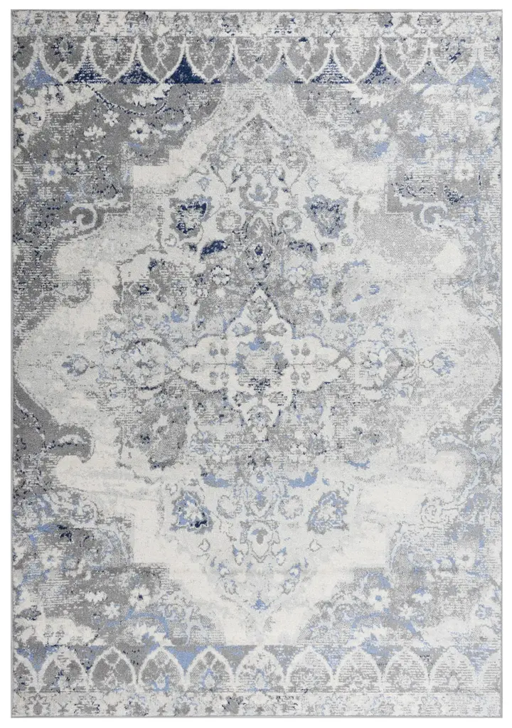 Capture the look of a day gone by with this Alora Décor Swagger Distressed Rug in neutral beige, blue, and black. Power-loomed with our exclusive heat-set, polypropylene exclusive Rizlon yarn, this rug is soft to the touch and durable. With its jute backing, this rug is perfect for any space in your home. This piece is sure to be a treasure in your transitional or rustic style home or office décor.