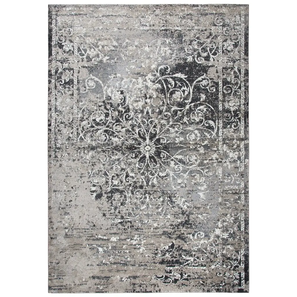 This Alora Décor Swagger Collection transitional area rug features a harmonious neutral palette of taupe, brown, gray, ivory, black and beige to complement a variety of interior design styles. The central medallion scroll work in a distressed design adds a warm rustic element, making it a cozy addition to any room or personal space.