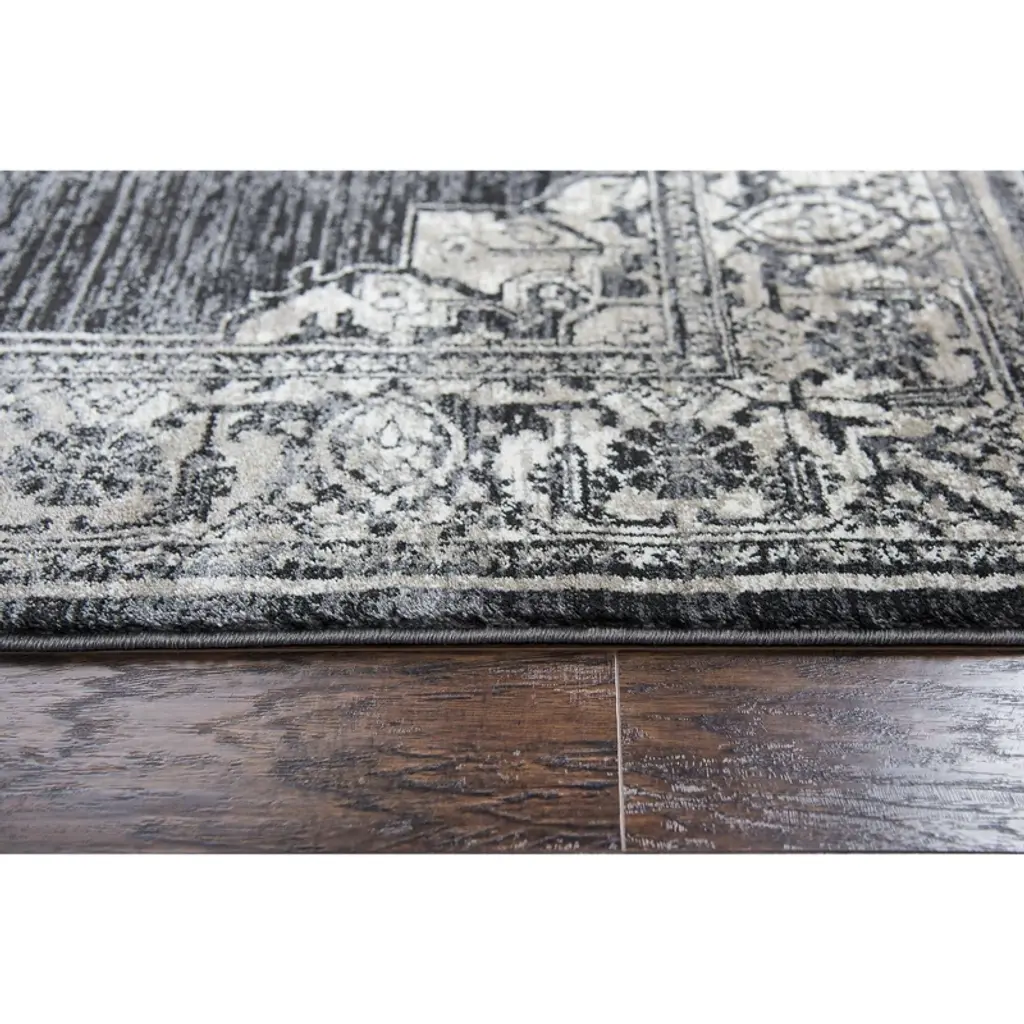 A royal flare from the days that rugs lined the castles in Persia, this Alora Décor Swagger Medallion Rug will add gorgeous designs of old to your transitional style décor. Power-loomed in contrasting neutral ivory and taupe against deep black and Grays from our exclusive heat-set polypropylene Rizlon yarn, this rug is soft to the touch and durable.
