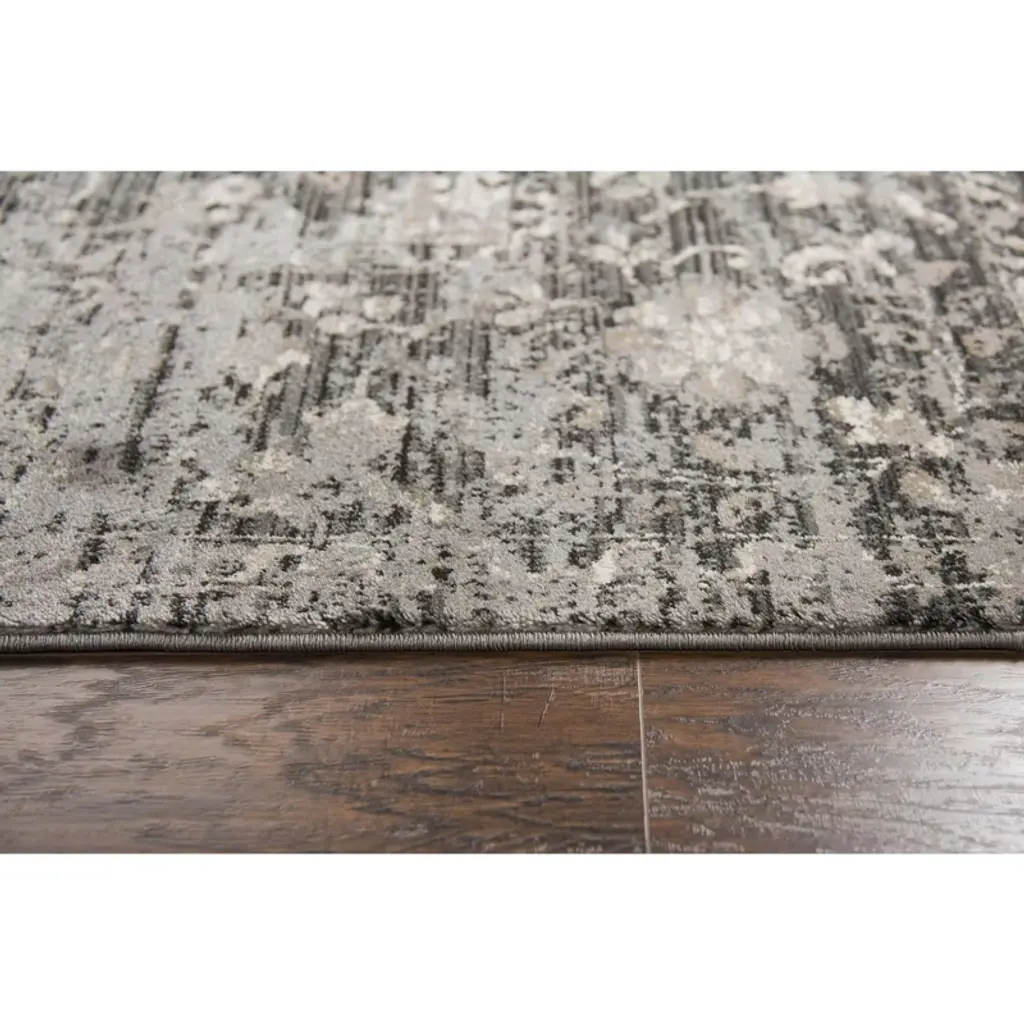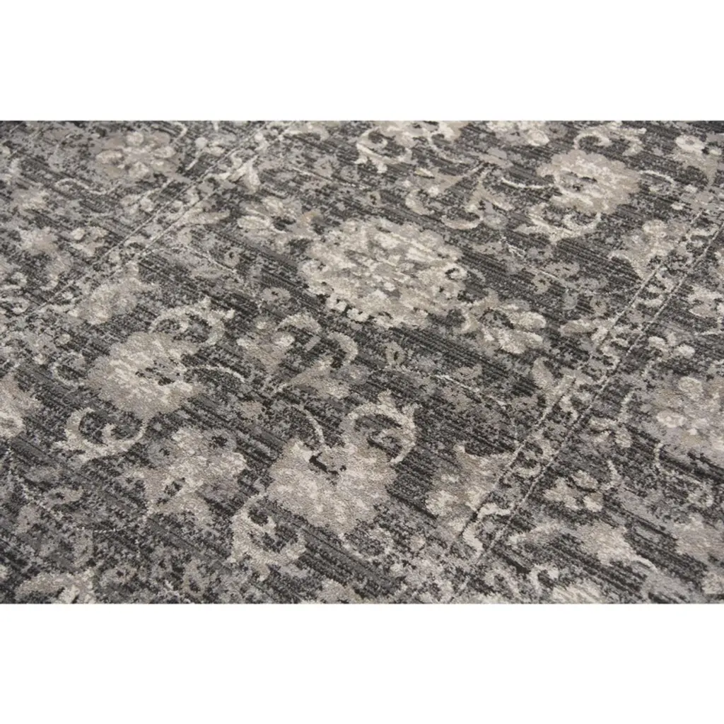 This striking Alora Décor Swagger Collection Persian area rug weaves a color palette of slate gray, black, tan and ivory hues giving it a versatile aesthetic that can complement a variety of interior design and home decor styles. Crafted from 100% heat set polypropylene-rizlon exclusive yarn, the durable construction can withstand high traffic areas and is easy to clean. The intricate floral distressed design adds timeless artistic elegance to this signature Mina-Khani design, creating a beautiful style anchor in any room in your home.
