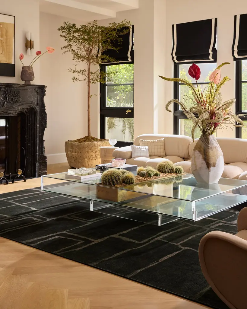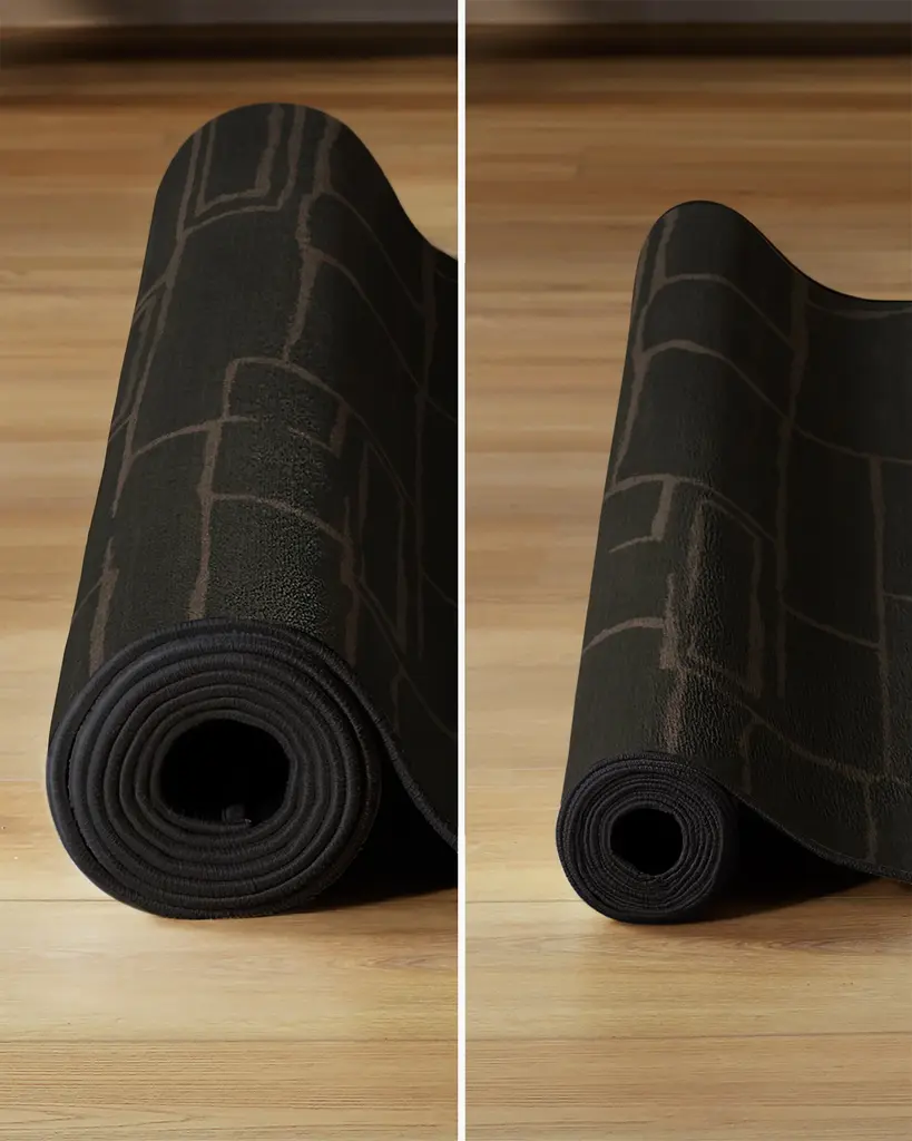 Elevate your home aesthetic with our Nina Takesh Alsace Soft Black Rug. Drawing on the works of Picasso and early 20th-century Cubism, this design features an asymmetric grid with complex hand-drawn lines that capture an organic ebb and flow. A soft palette of golds, creams, and taupes mix smoothly with a rich charcoal background. Water-resistant, stain-resistant, and machine-washable. Rug colors may vary slightly according to your device and the lighting in your space.