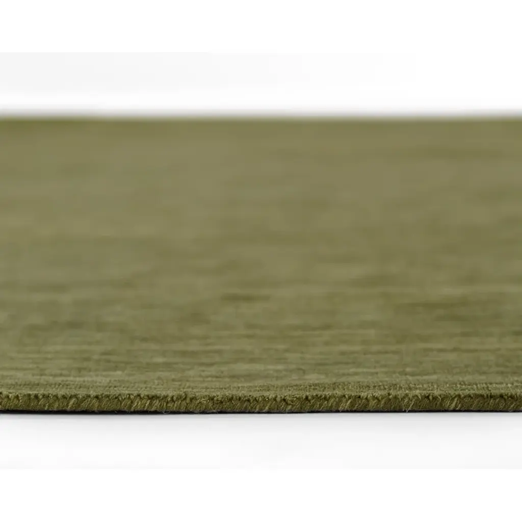 Lush underfoot. This hand-loomed wool rug brings the outdoors in with its vibrant green hue reminiscent of fresh grass. A medium pile adds softness and warmth to your space, while the cotton backing ensures stability on any indoor floor. Plus, it's floor heating safe – so you can enjoy cozy toes all year round. To keep this rug looking its best, we recommend professional cleaning and spot treatment with a damp cloth.
