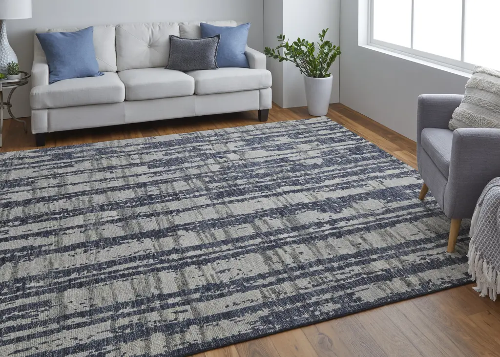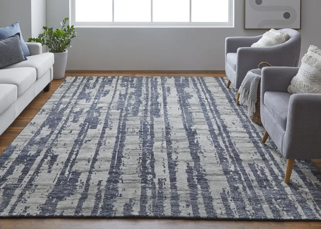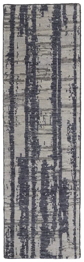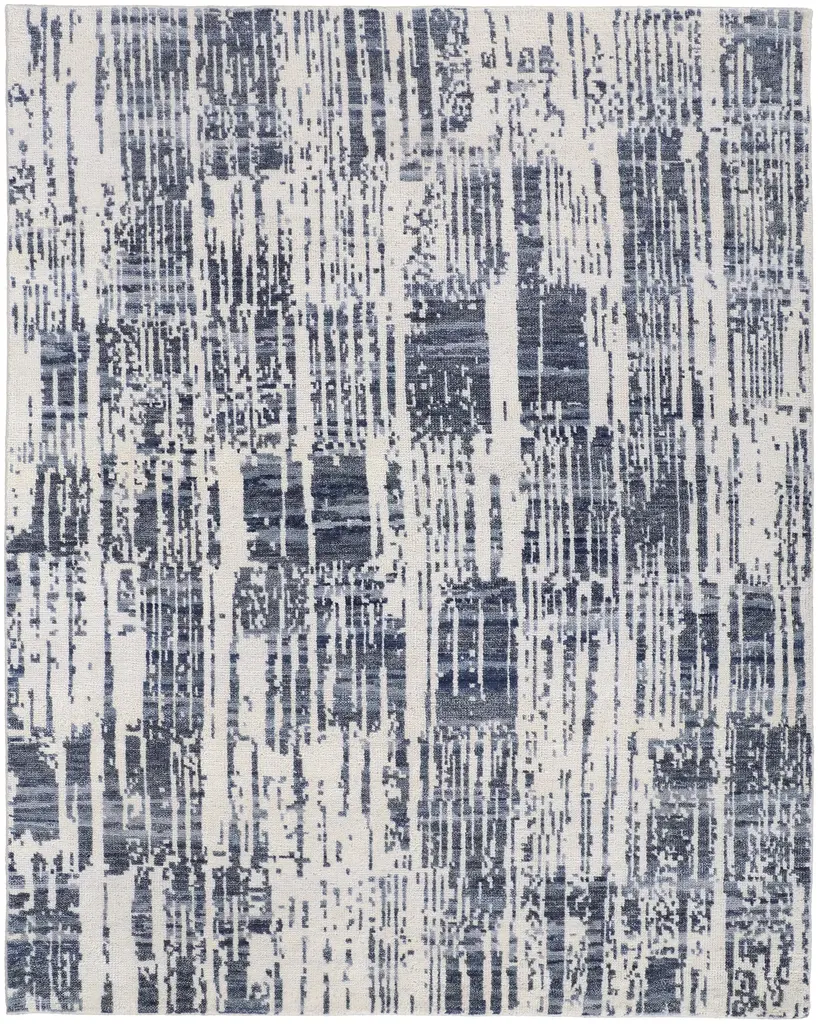 Collection: Altmar Colors: Blue, Gray, Taupe Construction: Hand Knotted Material: Face: 100%Wool Pile: Low Pile Pile Height: 0.31" Styles: Contemporary,Bohemian & Eclectic,Industrial Backing: N/A Made In: India Thickness: 0.31" Price Range: $$$$$ (Premium)