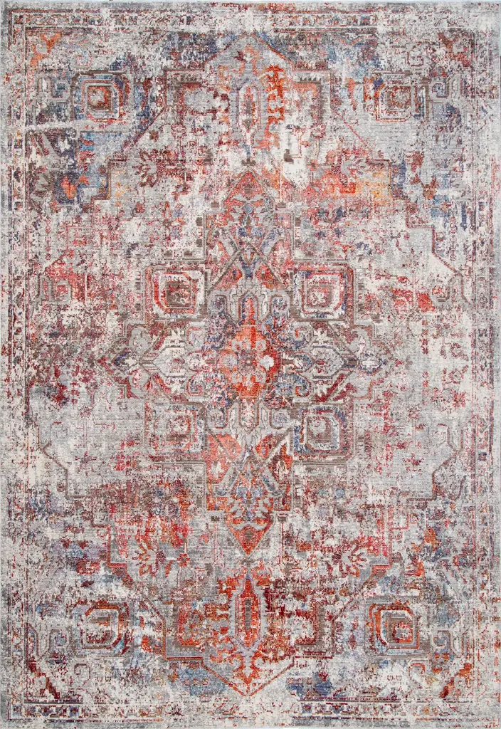 Capturing the beauty of antique Turkish rugs, the indoor-outdoor Polaris collection combines admired traditional designs with a durable, light-weight polypropylene construction. The Altona rug features a vibrant and whimsical take on an ornate center medallion with vivid multicolor hues blended with cream and gray tones. This bright, globally inspired rug offers a bold and statement-making addition to dining rooms, patios, and kitchens.High-Performance Style: this indoor/outdoor rug is specifically designed to tolerate outdoor elements and heavy trafficDurable Fibers: made of 100% polypropylene for livable durability and increased resilienceTextured Design: low, textured pile and lightweight construction offer a versatile accentCare and Cleaning: Clean or remove stains by using mild soap. Rinse with clean water or a garden hose. Allow rug to dry before laying rug out. Vacuum regularly with beater bar off for indoor use.Rug Pad Recommended: allow maximum air flow and additional cushioning with an outdoor rug pad
