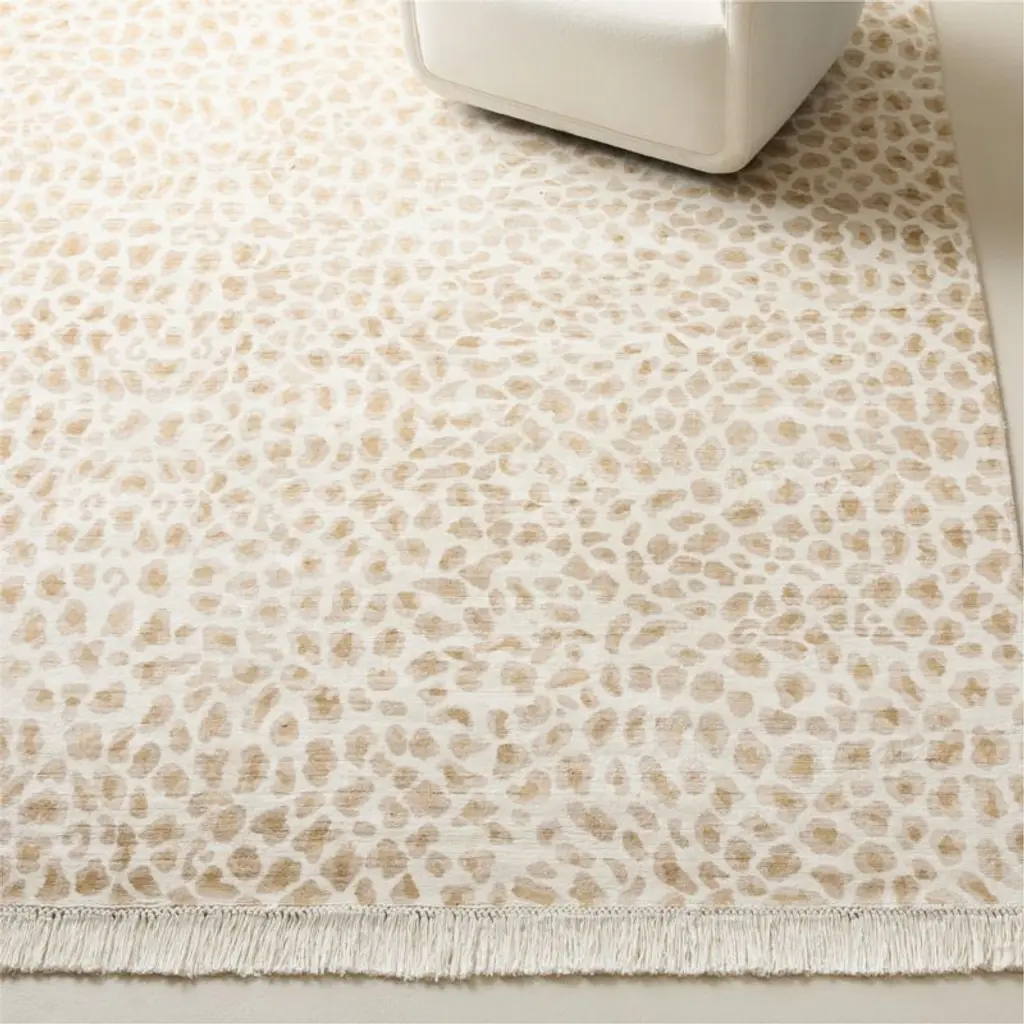 The Altra handloomed viscose rug by award-winning British designer Matthew Williamson is a modern take on a traditional animal print. Skilled weavers in India loom silky viscose yarns by hand for a soft pile with the tonal variations of an heirloom rug. A print with nuance, the fine viscose yarns have a slight sheen that shifts in tone as they catch the light. CB2 exclusive.How will it look in your room? 12"x12" rug samples are available in stores for a fee refundable upon return of the sample.