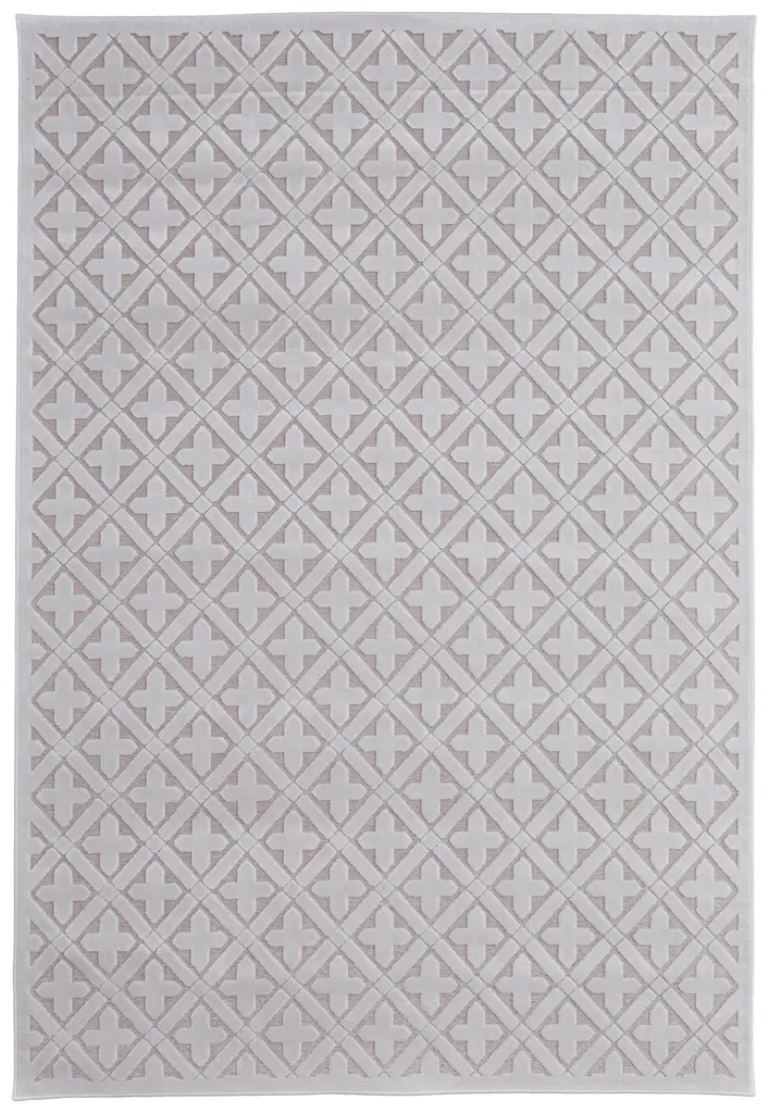 Collection: Alvar Colors: Gray, Off White Construction: Machine Woven Material: 100% Polypropylene Pile: Medium Pile Pile Height: 0.28" Styles: Contemporary Outdoor Safe: Yes Made In: Turkey Thickness: 0.39" Price Range: $$$$$ (Most Affordable)