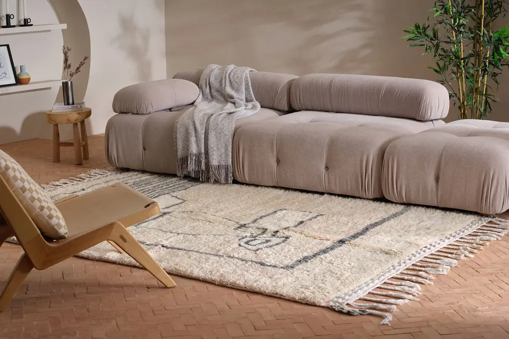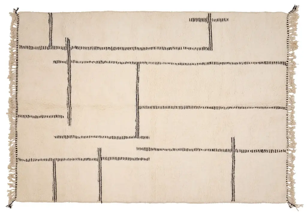 Our Moroccan pieces are each one-of-a-kind. Much of our collection was woven between 30 and 100 years ago, and curated by us. Other rugs in our collection are fresh off the loom and made with traditional techniques. Moroccan rugs don’t come with a key. As with any painting or poem, their motifs have many subjective interpretations. Originally made for personal use, these rugs took months to weave, documenting a shifting tide of events and emotions in the weaver’s life.