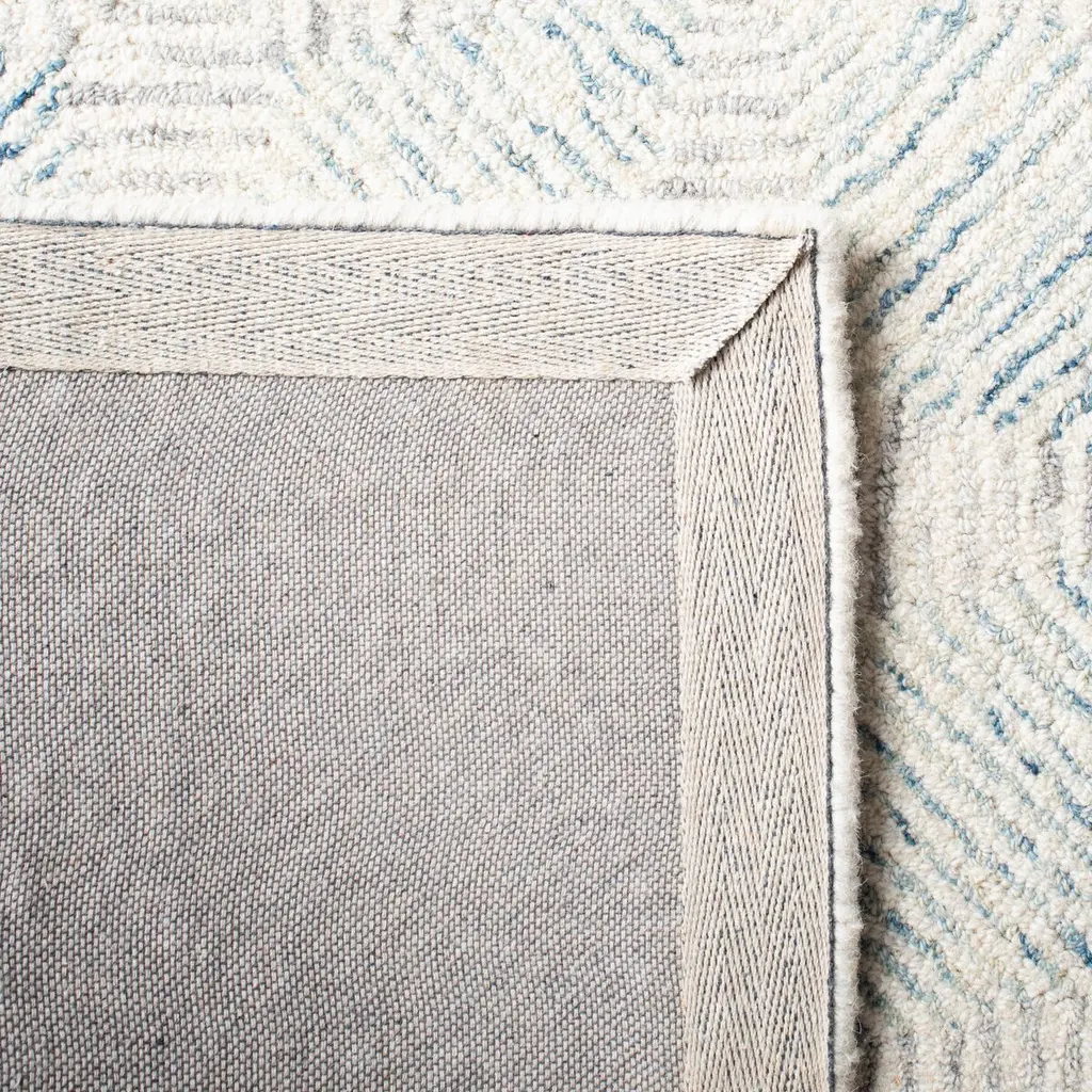 Elevate any space with this exquisite 4' x 6' area rug, showcasing a blend of ivory and light blue hues for a serene aesthetic. The small rectangle profile has a comfortable height of 1/4", perfect for sliding under furniture or standing alone as a subtle style statement. Each rug is meticulously crafted in India using a hand-tufted technique that promises enduring quality, combining 80% wool and 20% cotton for a plush, durable texture. The compelling pattern features an innovative spiral design, offering a modern twist to the contemporary style of the rug, making it a versatile addition to any decor. Note that this beautiful piece is not washable and lacks slip-resistant backing, so pairing with a rug pad is advised to ensure stability and longevity. Incorporate this piece into your home for a touch of elegance and warmth that only a handcrafted rug can provide.