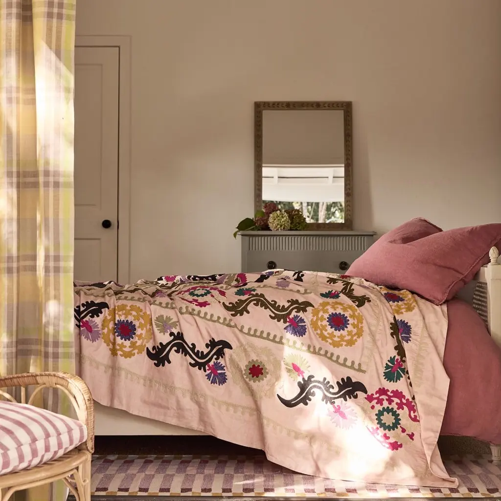 Op art. In a palette of warm brights, this checkered stripe rug could hang on a gallery wall—but in RWS-certified wool and cotton, it’s so soft and comfy, you’ll want it for your floors.