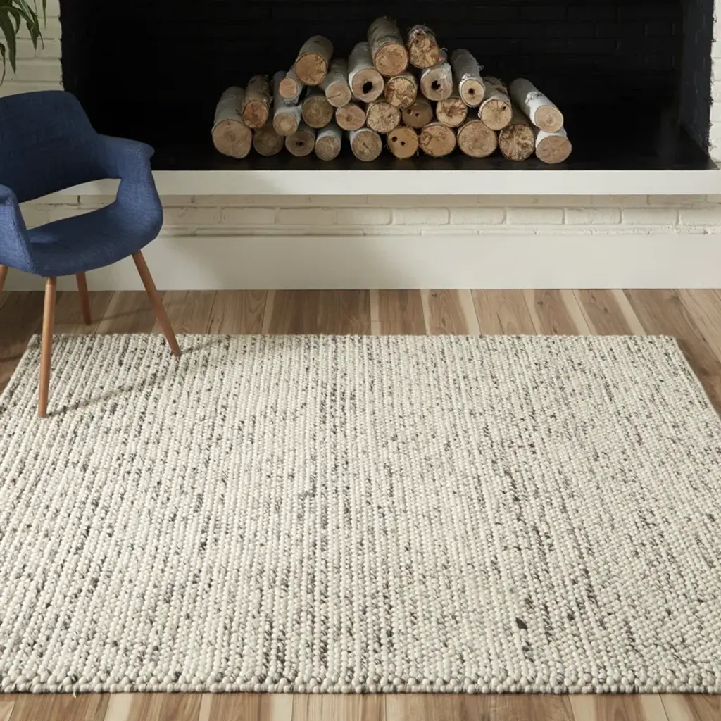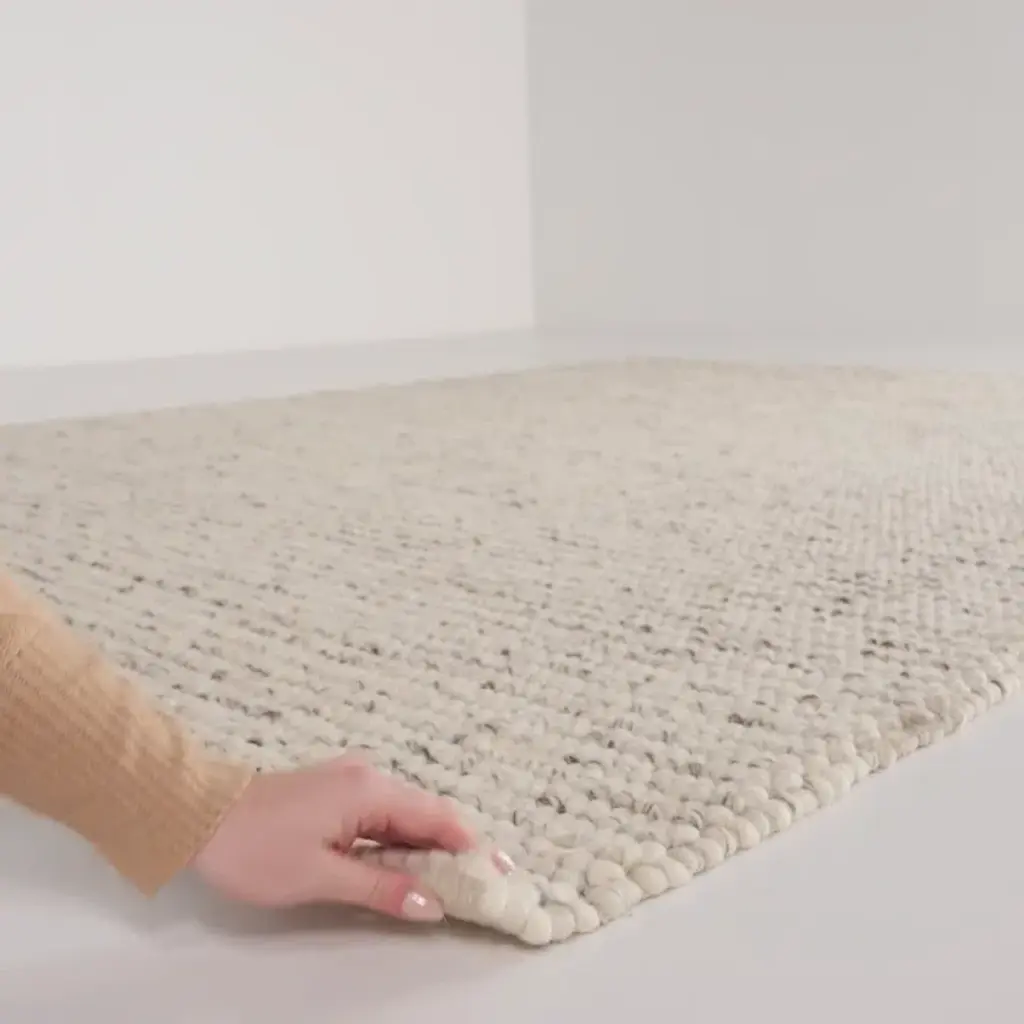 This indoor rug is handwoven from a mixture of thermal wool and silky viscose. A medium pile adds a layer of warmth and texture to your floors – giving you the perfect excuse to go barefoot. Plus, its neutral ivory tone makes it easy to style in your space, while flecks of dark gray provide subtle visual interest. Roll it out over a rug pad to keep it in place.
