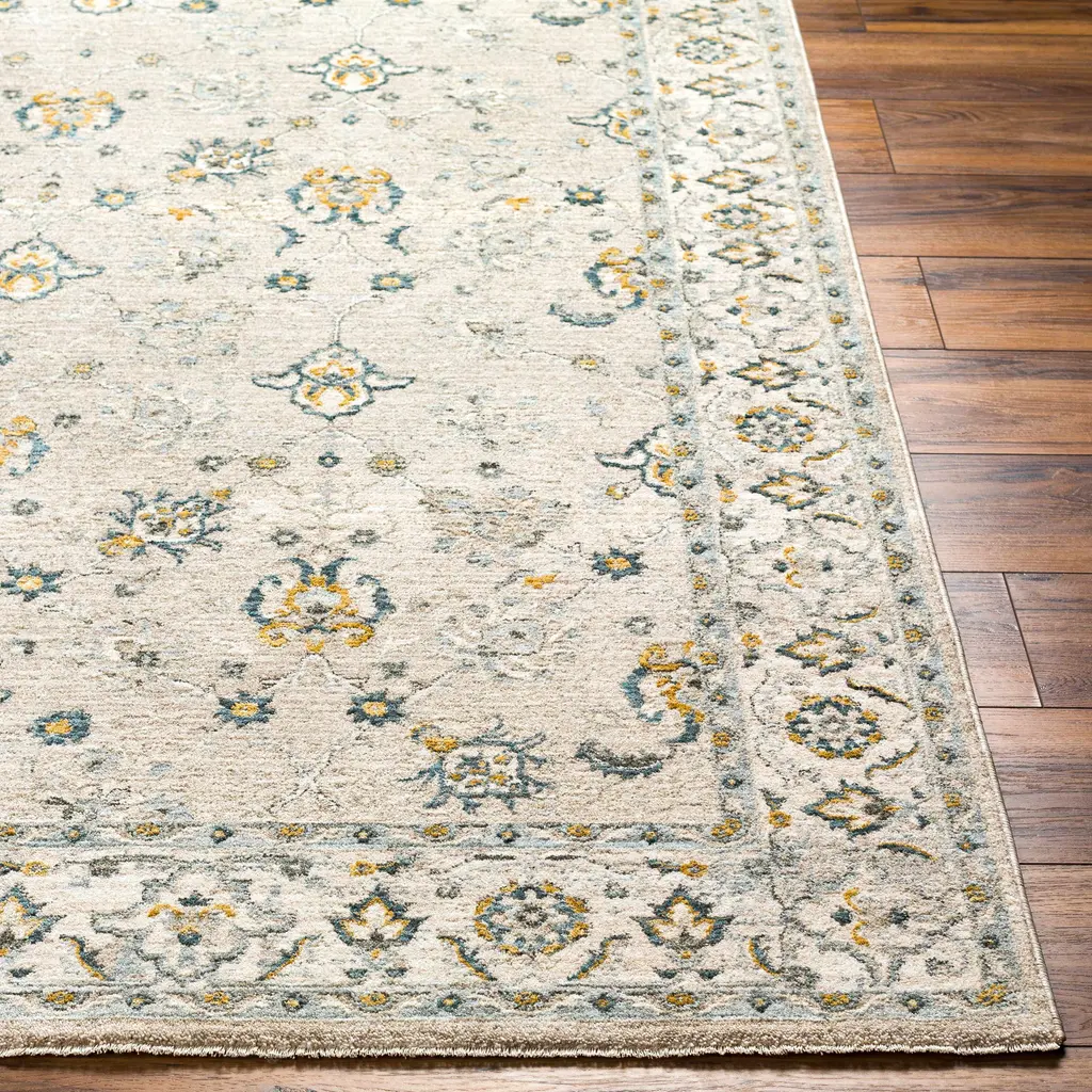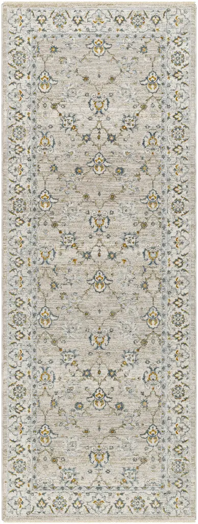 Collection: Amaru Colors: Taupe, Off White, Medium Gray, Light Gray, Teal, Olive, Mustard Construction: Machine Woven Material: 100% Polyester Pile: Medium Pile Pile Height: 0.35" Styles: Traditional Made In: Turkey Thickness: 0.43" Fringe Length: 0.43" Price Range: $$$$$ (Affordable)