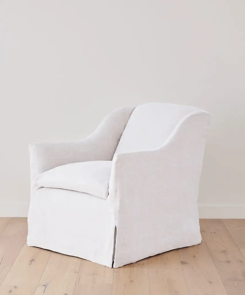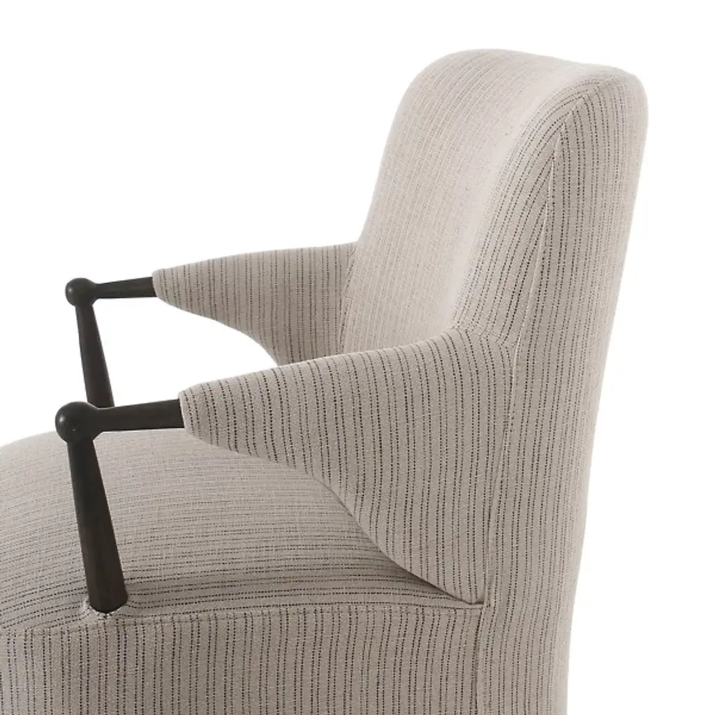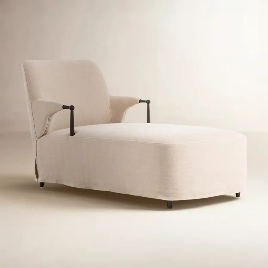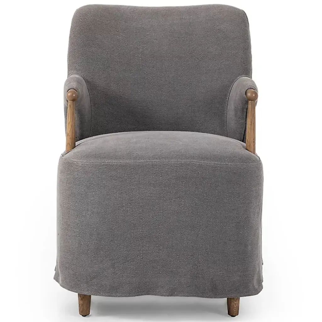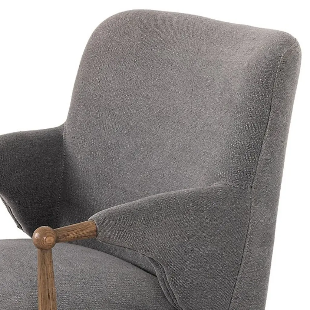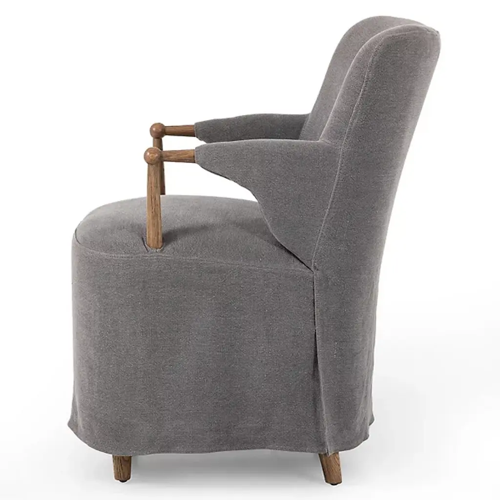 The Amber Lewis x Four Hands Brently Dining Armchair from Four Hands lets you enjoy your meals in contemporary style. It is composed of solid oak, bringing natural warmth to your space. The globe-shaped embellishments at the ends of the chair’s arms add refinement and hold your attention. Your dining armchair is filled with foam for maximum comfort. Brently comprises a combination of flax/linen and polyester for sophistication. Its discreet legs add balance and allow your chair to be placed on area rugs easily.