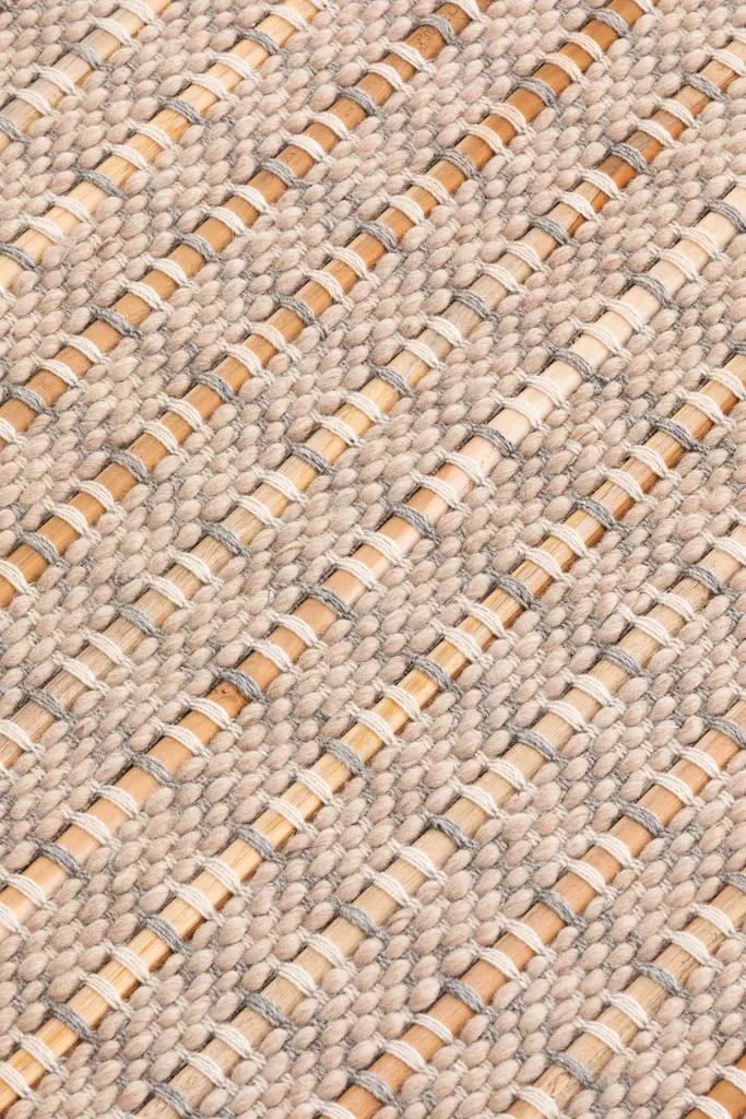 Ame Beige Goz Rug by Gandia BlascoDesign by Kengo KumaDimensions: W 176 x H 240 cm. Materials: Wool, teak wood. Weight: 11,18 kgPassion for life outdoors, a dream come true on the edge of a cliff in the north of Ibiza. The elemental and architectural geometry of our first outdoor furniture collection transcended borders thanks to its ability to respond to canons of timelessness and universality. Its refined, purely architectural design, made of aluminum profiles combined with polyethylene, opened up market niches that didn’t exist until then, confirming the expansion of the company to every continent. The essential design of architectural lines defines the personality of GANDIABLASCO’s furniture and pergolas collections, together with the concept of large collections. More than furniture, these are fresh and elegant products that complement each other to create environments where one can enjoy the outdoors, Mediterranean-style.