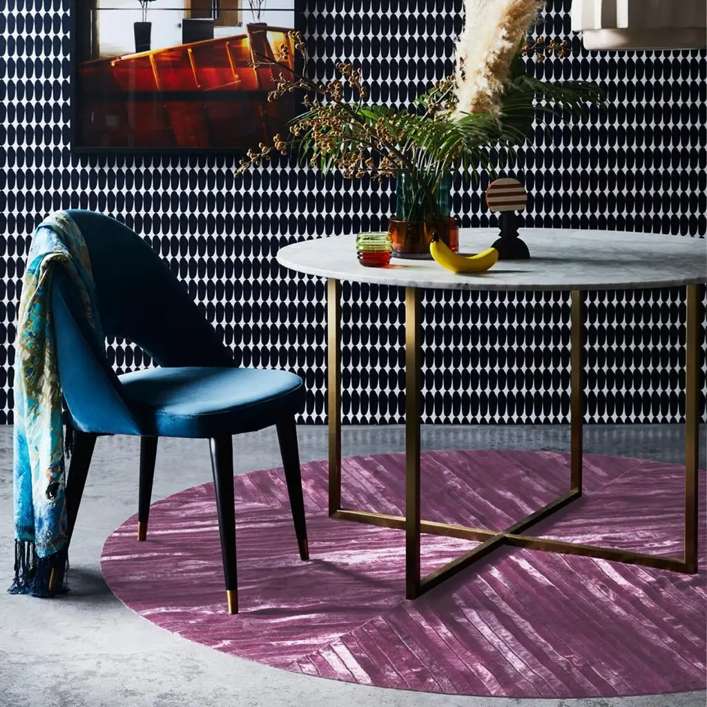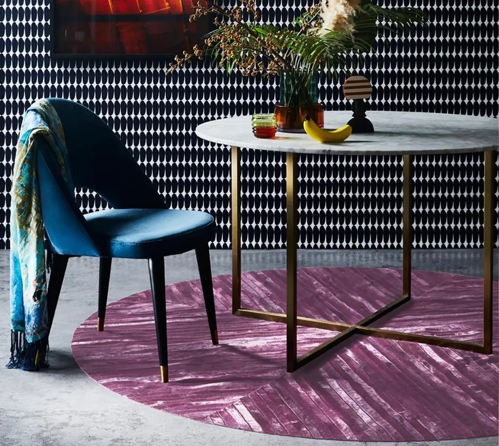 Our best selling La Quinta with its long lines and perfect symmetry is refreshed in magnificent new season Amethyst. This tone is soft and calming, yet has presence and vibrancy. A truly stunning rug suitable for so many rooms and spaces.The rugs are pieced together using commercial grade nylon thread. It has a ribbon edge finish.Size guide.1.5m – 4’11” diameter2.0m – 6’6” diameter2.5m – 8’2” diameterThis item can easily be customized to any color size or shape upon request. Art Hide rugs are made to order. Please allow 4-5 weeks for delivery.