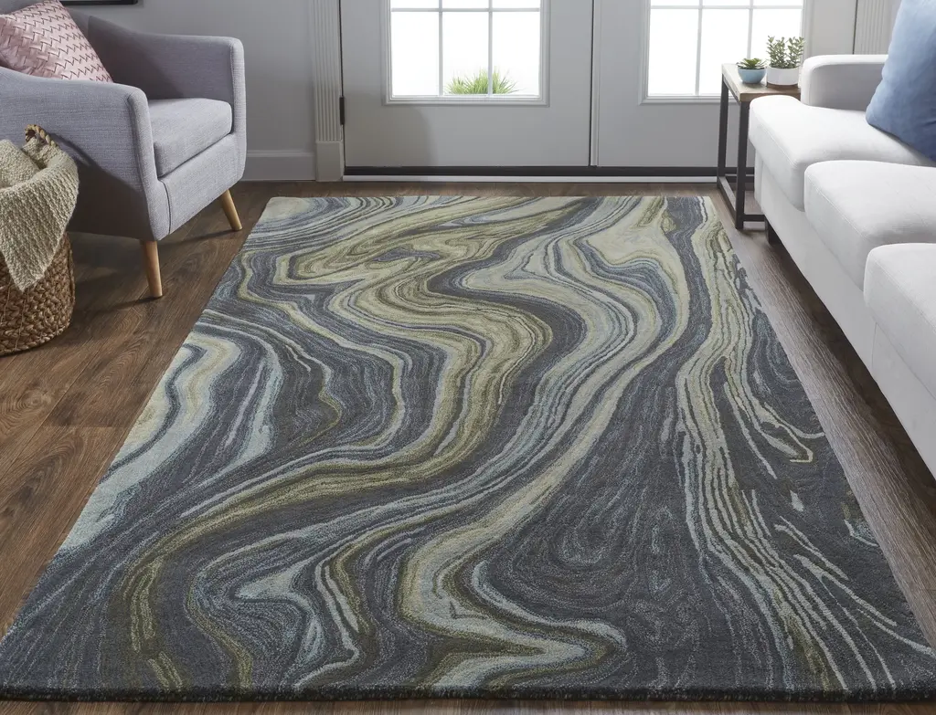 Collection: Amira Colors: Blue, Ivory, Green Construction: Hand Tufted Material: Face: 100%Wool / Warp: Cotton Pile: Medium Pile Pile Height: 0.51" Styles: Transitional,Industrial,Casual Backing: Cotton Made In: India Thickness: 0.51" Price Range: $$$$$ (Premium)