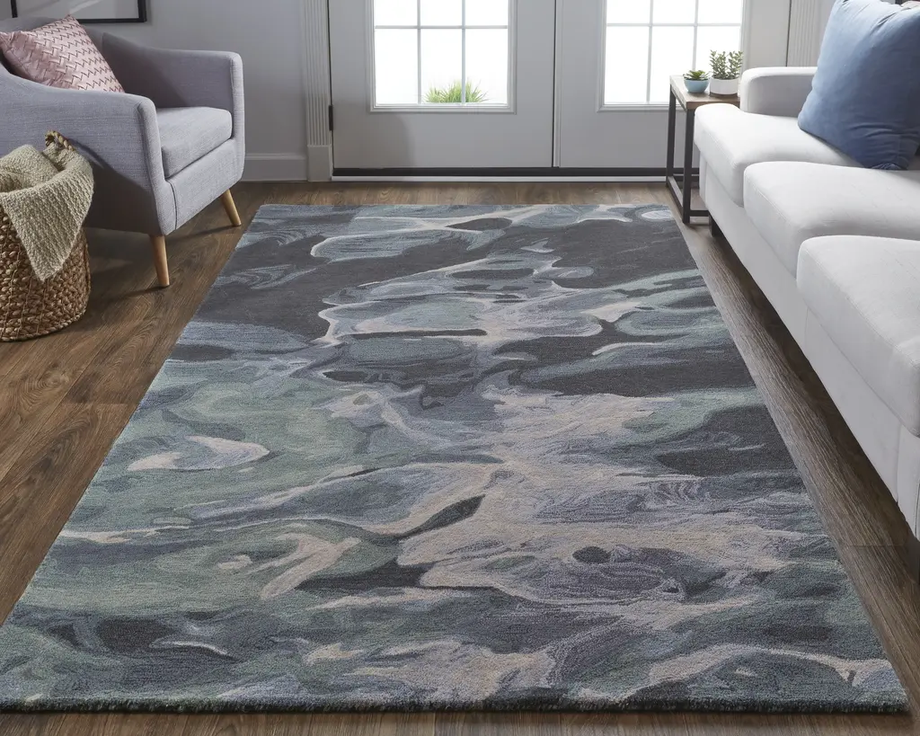 Collection: Amira Colors: Green, Blue, Black Construction: Hand Tufted Material: Face: 100%Wool / Warp: Cotton Pile: Medium Pile Pile Height: 0.51" Styles: Transitional,Industrial,Casual Backing: Cotton Made In: India Thickness: 0.51" Price Range: $$$$$ (Premium)