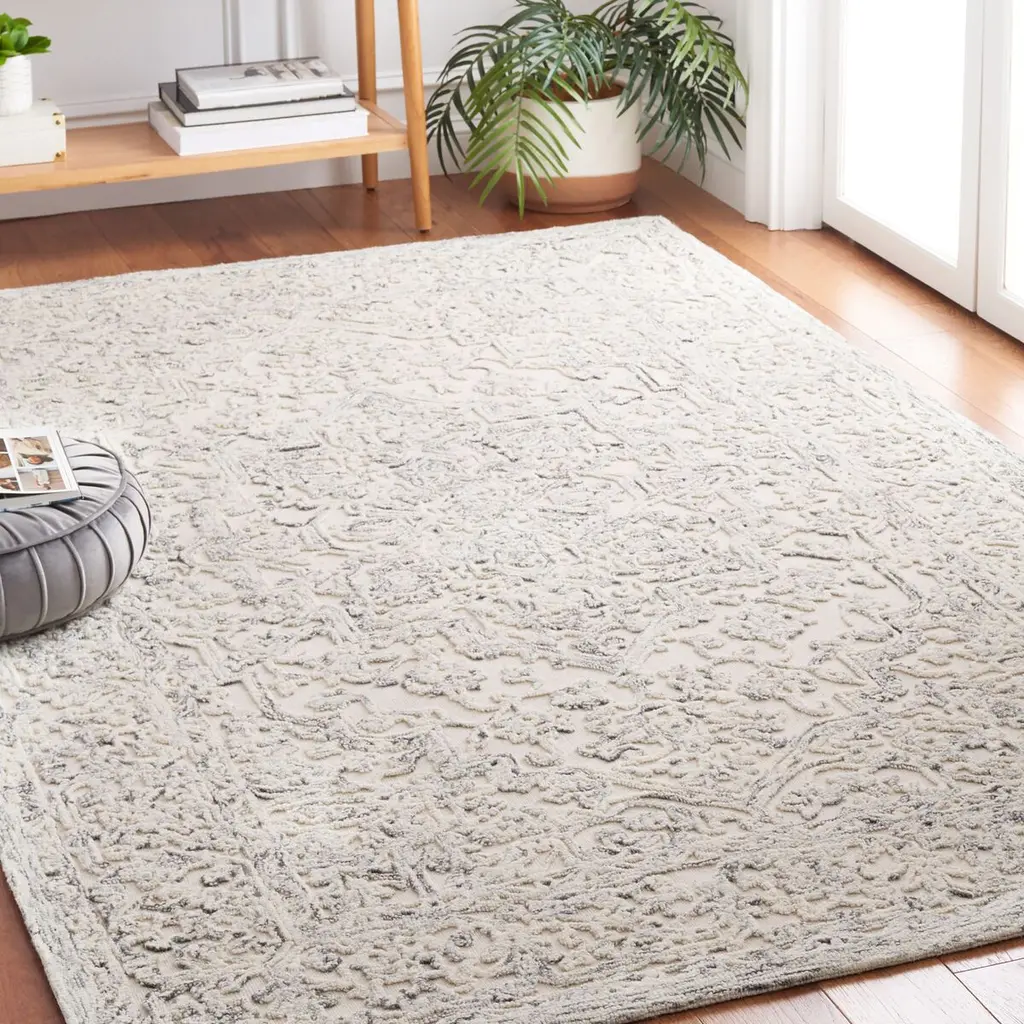 Hand-tufted of plush wool, this rug has an inviting high-low pile that emphasizes its graceful traditional motif. A rug pad is recommended to help prevent slipping and extend the life of the rug.
