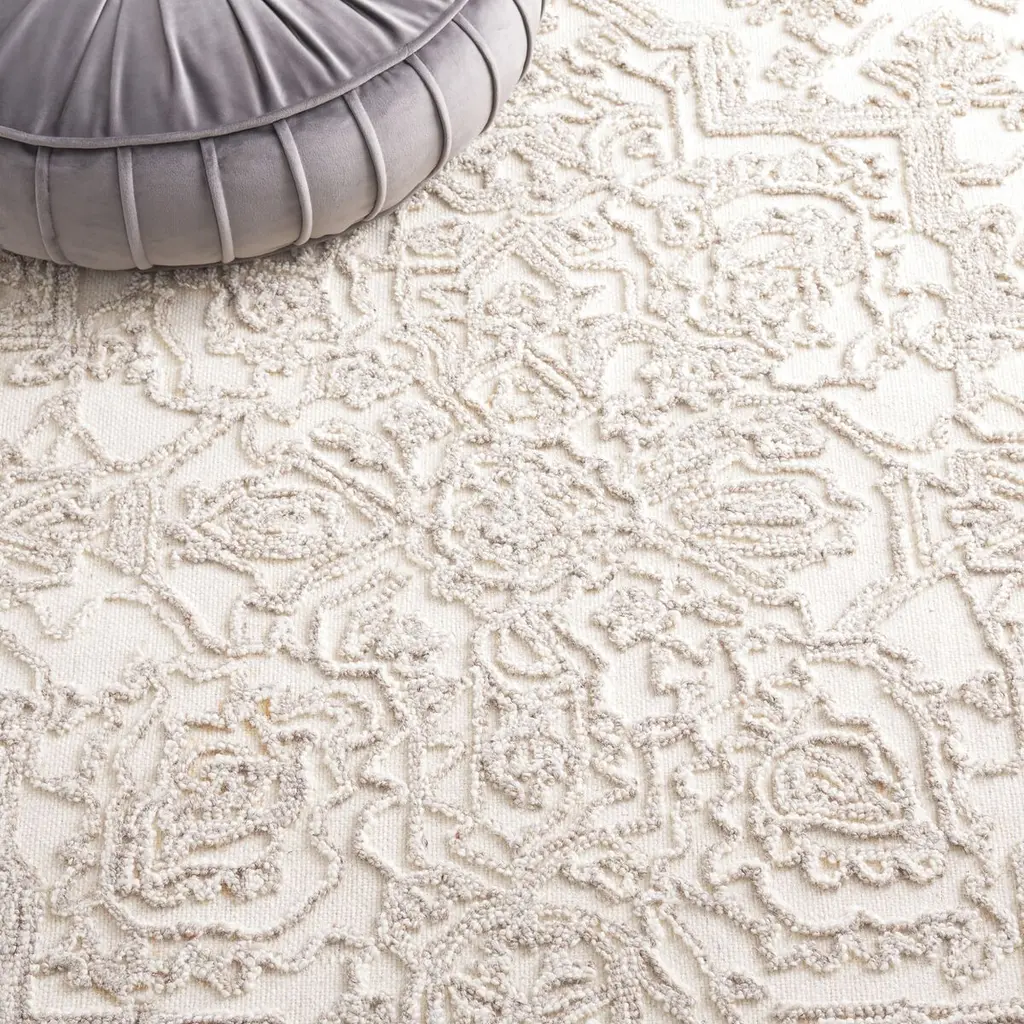 Hand-tufted of plush wool, this rug has an inviting high-low pile that emphasizes its graceful traditional motif. A rug pad is recommended to help prevent slipping and extend the life of the rug.