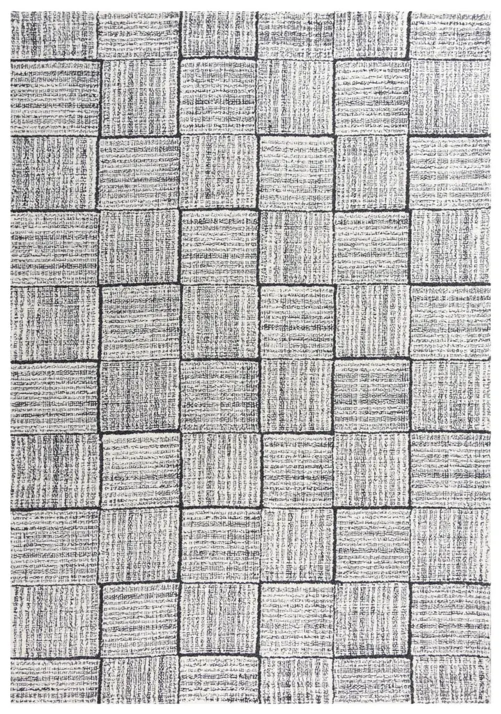 Collection: Anadarko Colors: Black, Charcoal, Cream, Blue, Dark Red Construction: Hand Tufted Material: Face: 100% Wool Pile: Medium Pile Pile Height: 0.39" Styles: Contemporary Backing: Canvas Made In: India Thickness: 0.63" Price Range: $$$$$ (Affordable)