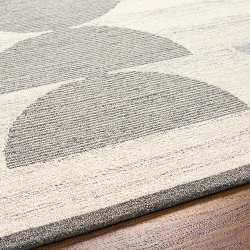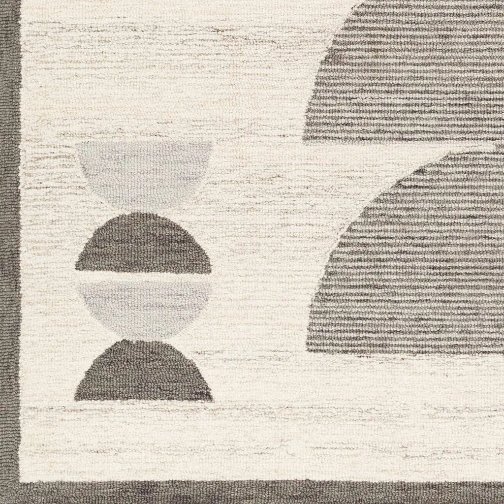 Collection: Anahi Colors: Gray, Beige, LightGray Construction: Hand Tufted Material: 100% Wool Pile: Medium Pile Pile Height: 0.24" Styles: Contemporary Backing: Canvas Made In: India Thickness: 0.39" Price Range: $$$$$ (Affordable)
