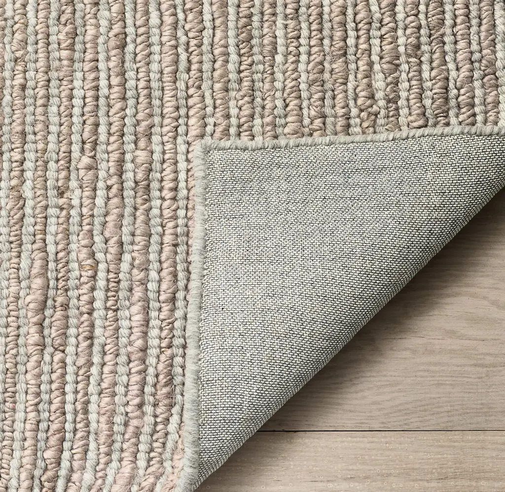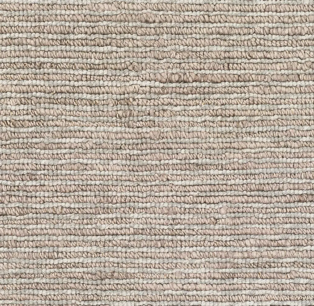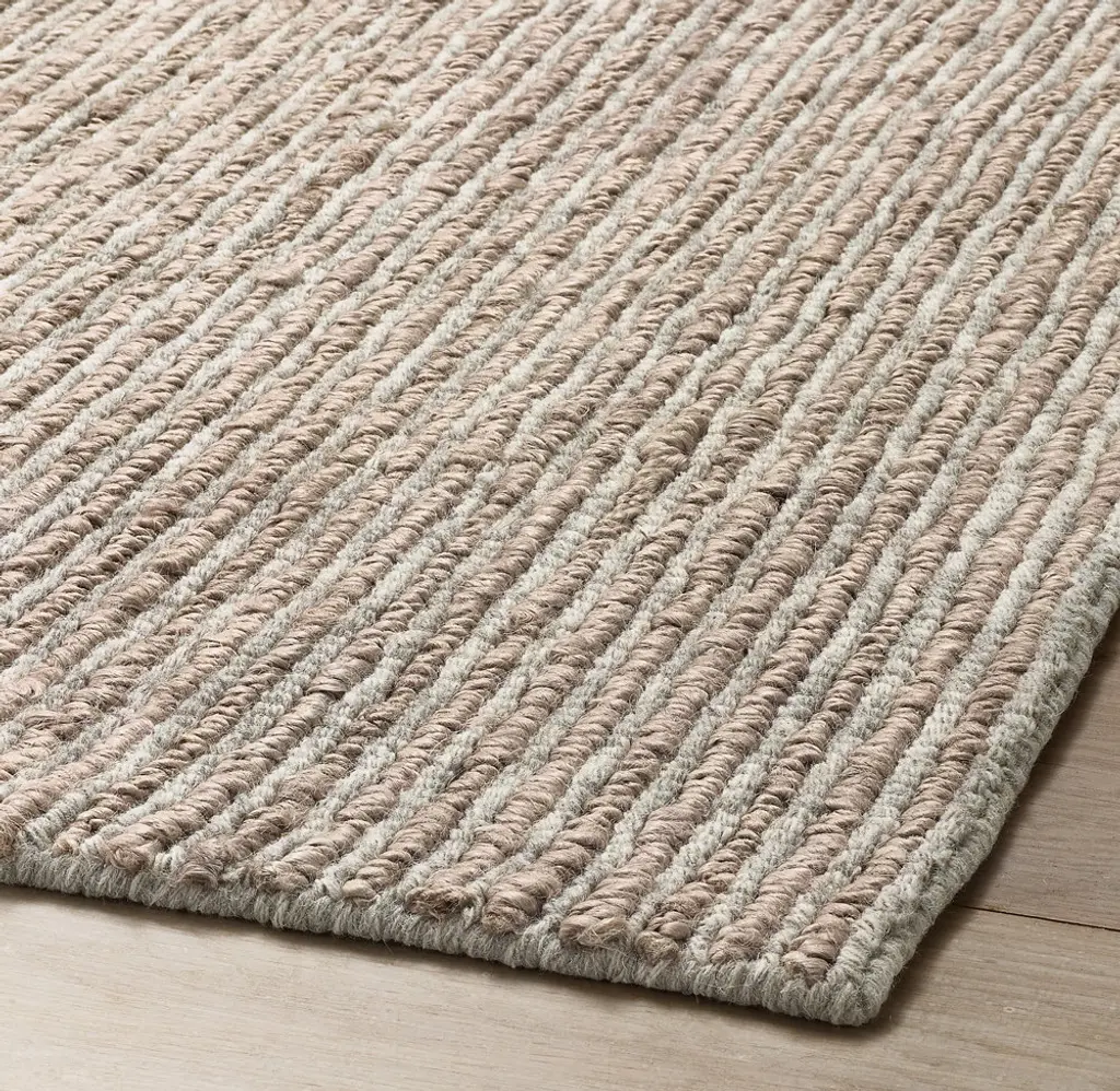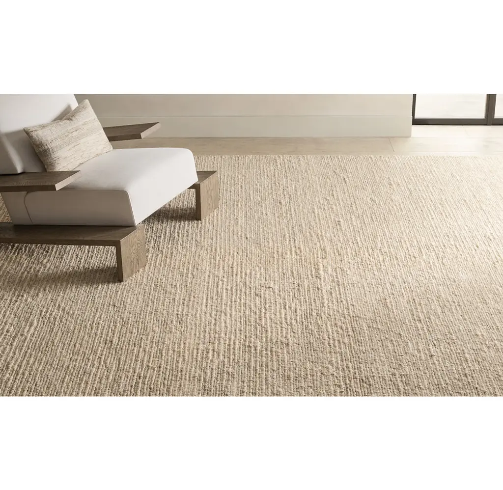 Chunky loops of natural jute and undyed wool form Anand's textural tableau. Alternating rows highlight the fibers' organic character and create heathered shading that's unique to each rug.