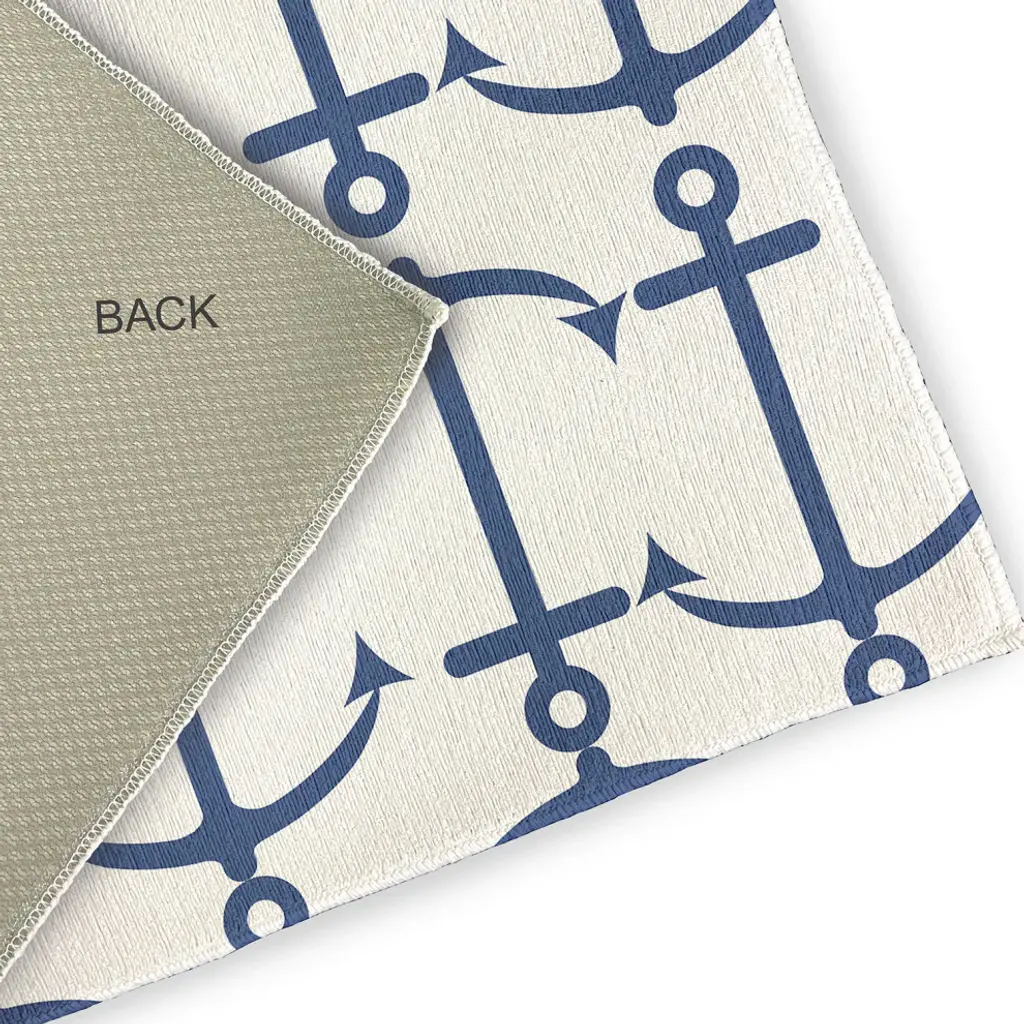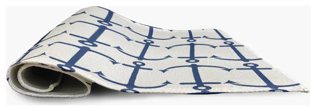 Bring the Seaside to your home decor with the Anchor Pattern Indoor/outdoor Rug from our Nautical Nights Collection. Everyone will delight in the space defining design brought to your porch, patio, kitchen, or bathroom by this area rug. The artistic and colorful design is printed on a soft polyester base with a skid resistant backing, making it a perfect way to add color, flare and personality to any indoor or outdoor space. To clean, use a mild soap and lay flat to dry.
