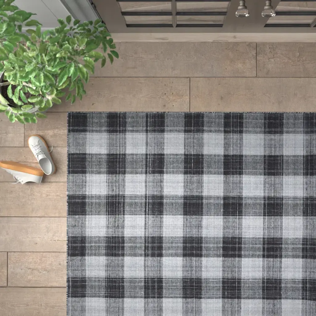 Andale Plaid Handmade Dhurrie Black/charcoal/gray Area Rug