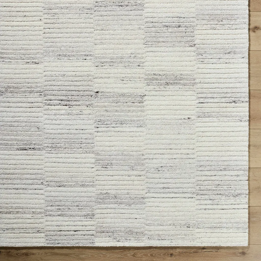 Collection: Andred Colors: Ivory, Beige, Taupe, Light Gray Construction: Hand Tufted Material: 100% Wool Pile: Medium Pile Pile Height: 0.31" Styles: Transitional,Bohemian Backing: Canvas Made In: India Thickness: 0.51" Price Range: $$$$$ (Affordable)