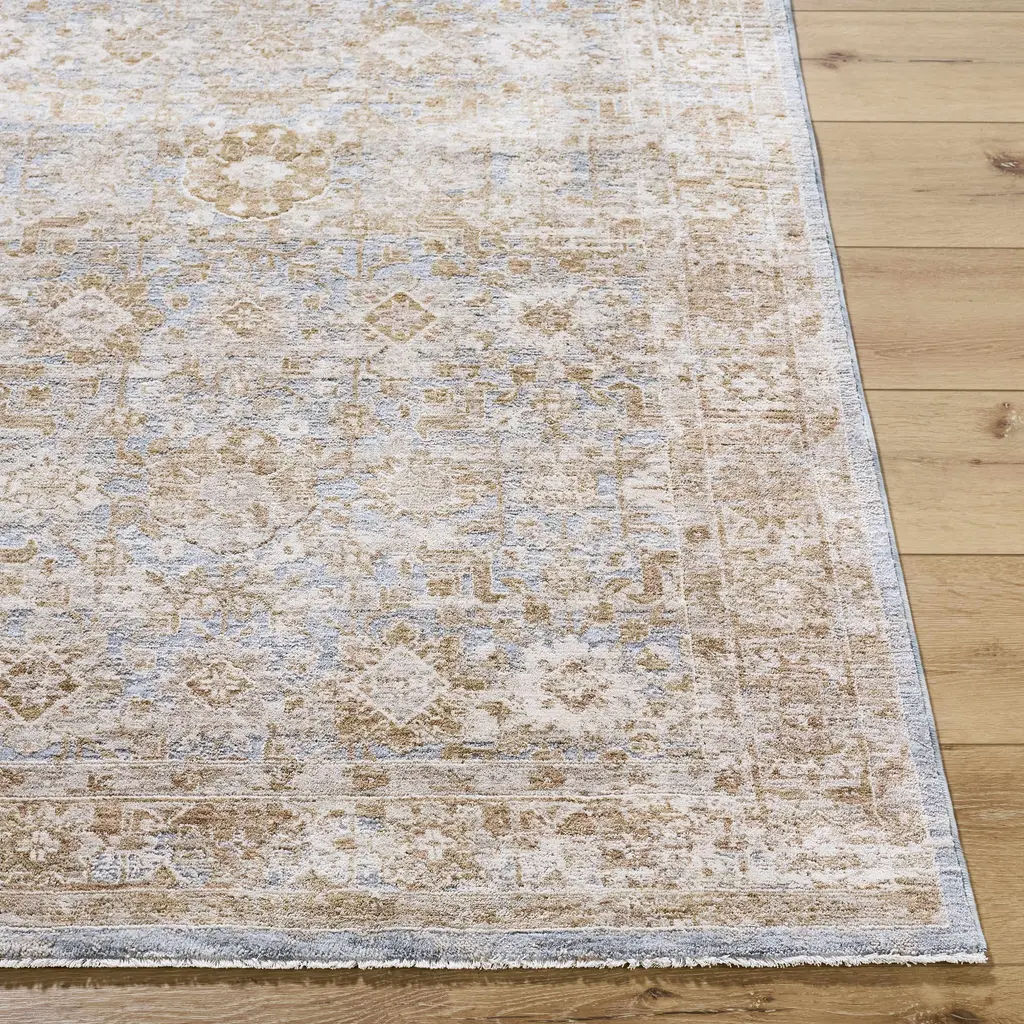 Collection: Andres Colors: Cream, Tan, Sage, Blue, Light Brown Construction: Machine Woven Material: 100% Polyester Pile: Medium Pile Pile Height: 0.31" Styles: Traditional Made In: Turkey Thickness: 0.39" Price Range: $$$$$ (Affordable)
