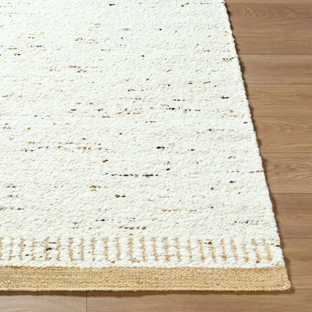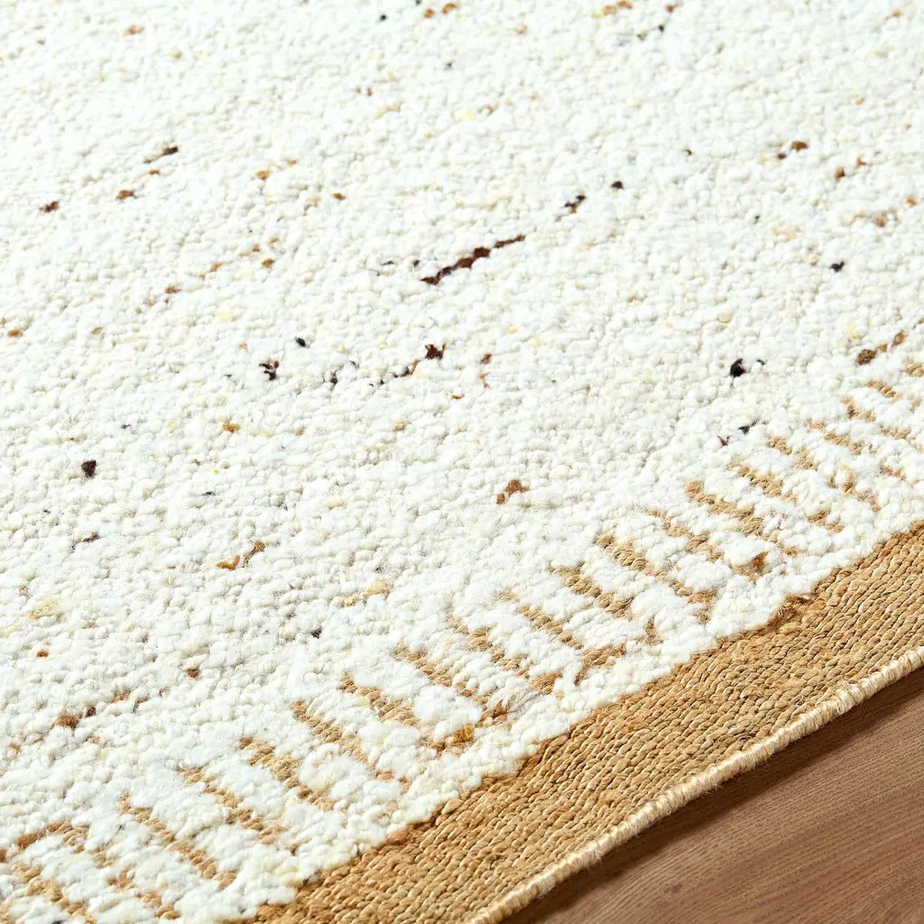 Collection: Andrey Colors: Beige, Light Brown, Charcoal Construction: Hand Woven Material: 85% Wool, 15% Jute Pile: Medium Pile Pile Height: 0.3" Styles: Contemporary Made In: India Thickness: 0.3" Price Range: $$$$$ (Affordable)
