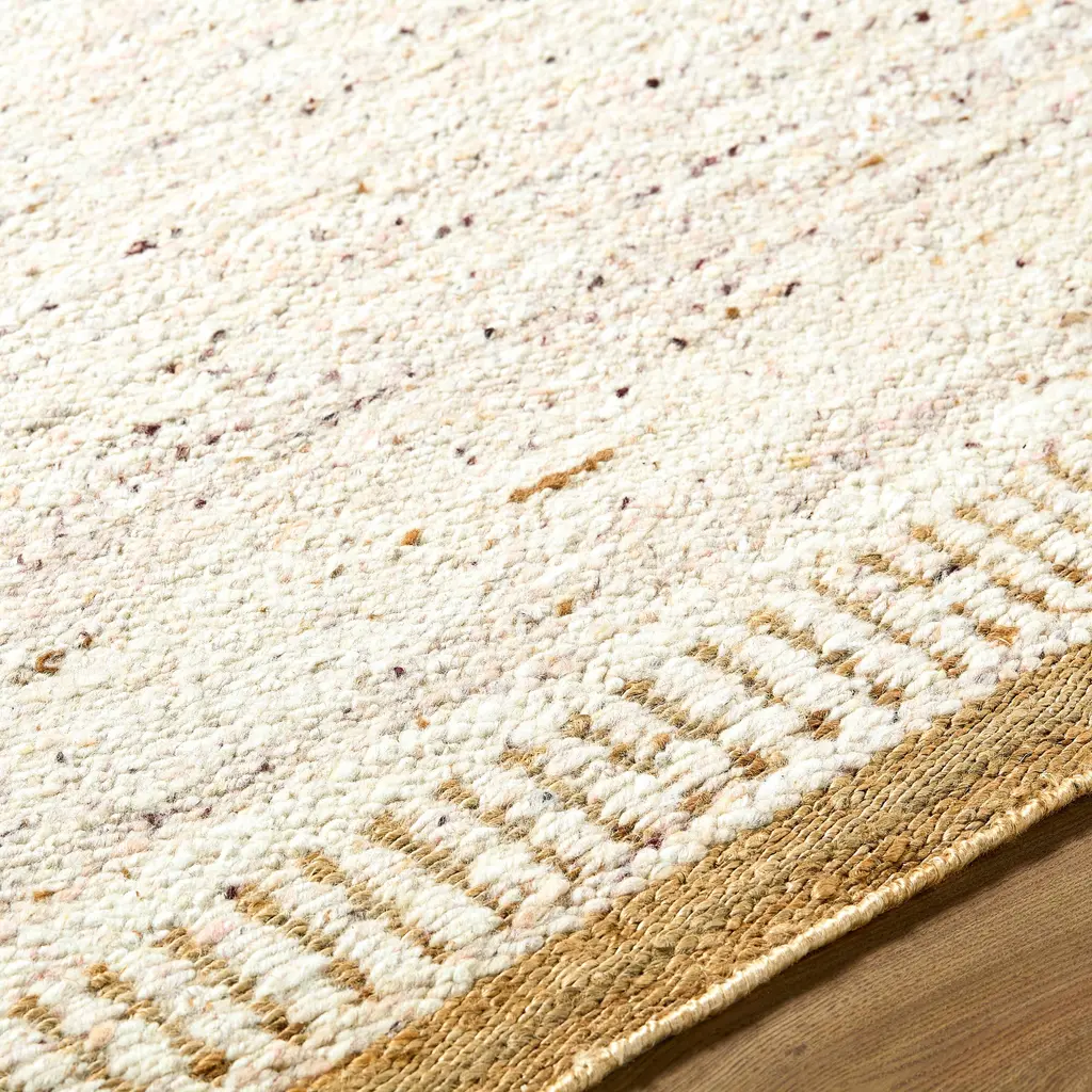 Collection: Andrey Colors: Beige, Light Brown, Charcoal Construction: Hand Woven Material: 85% Wool, 15% Jute Pile: Medium Pile Pile Height: 0.3" Styles: Contemporary Made In: India Thickness: 0.3" Price Range: $$$$$ (Affordable)