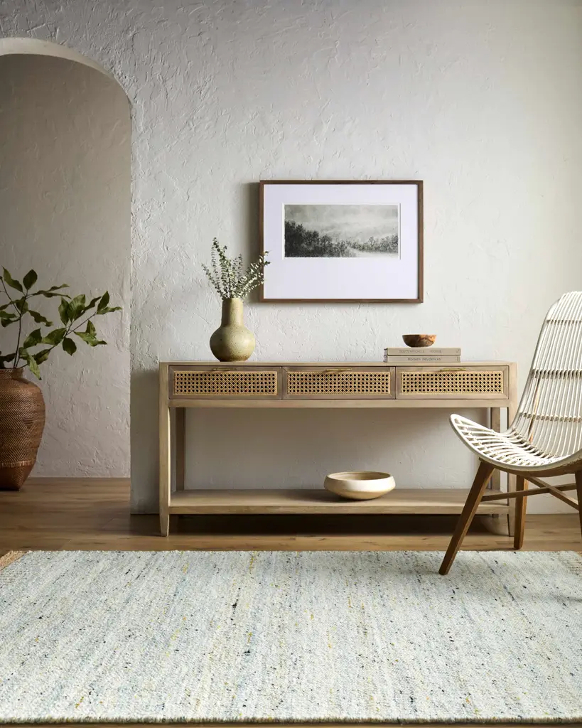 Collection: Andrey Colors: Medium Brown, Light Brown, Charcoal Construction: Hand Woven Material: 85% Wool, 15% Jute Pile: Medium Pile Pile Height: 0.3" Styles: Contemporary Made In: India Thickness: 0.3" Price Range: $$$$$ (Affordable)