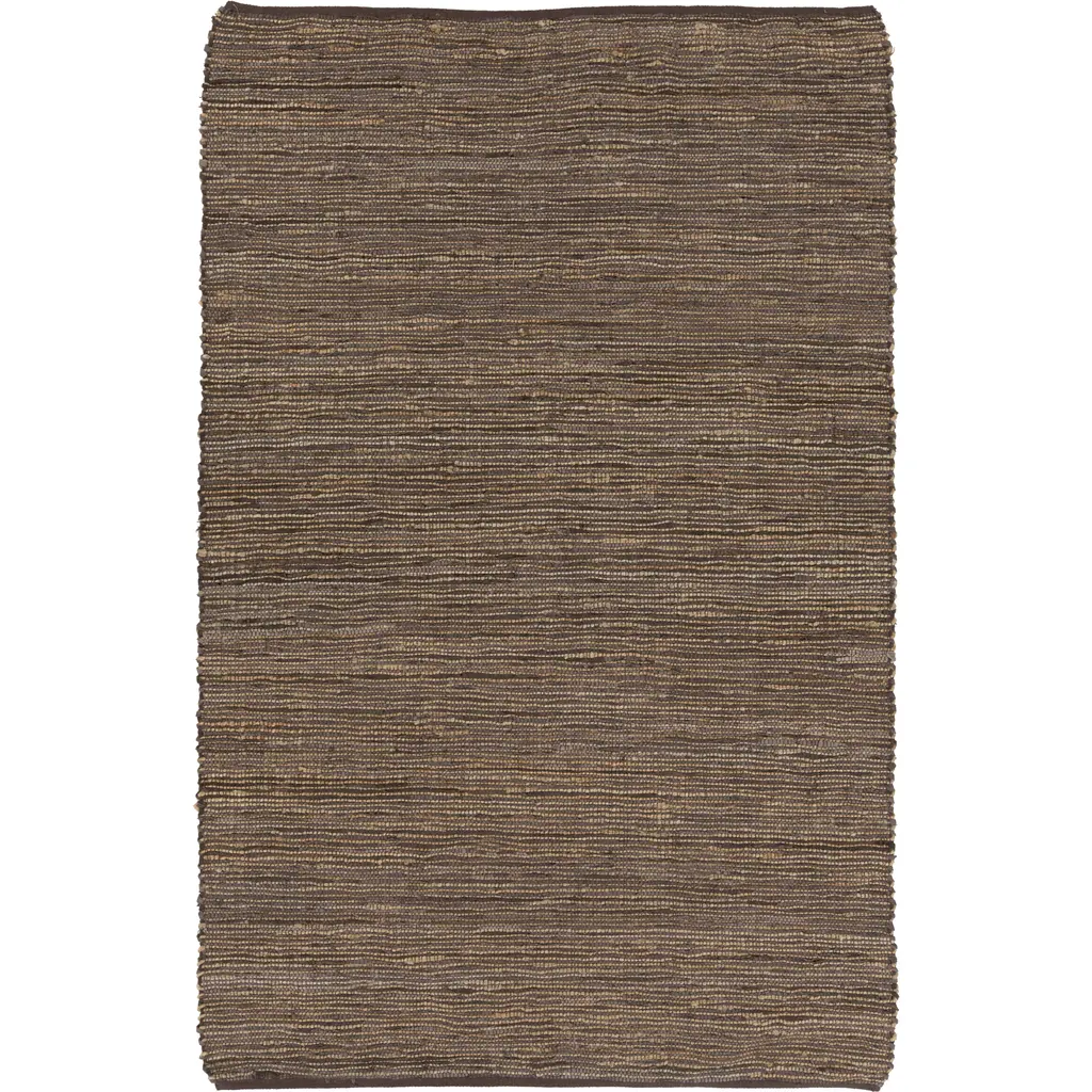 Collection: Aneko Colors: Rust, Dark Red, Medium Brown Construction: Hand Woven Material: 100% Leather Pile: Flat Pile Styles: Contemporary Made In: India Thickness: 0.27" Price Range: $$$$$ (Affordable)