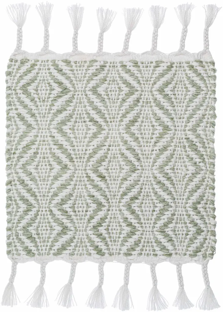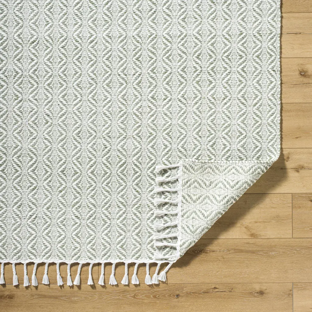 Collection: Anelia Colors: Sage, Ivory, Green Construction: Hand Woven Material: 100% Recycled PET Yarn Pile: No Pile Styles: Transitional,Traditional Made In: India Thickness: 0.3" Fringe Length: 4" Price Range: $$$$$ (Affordable)