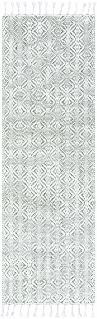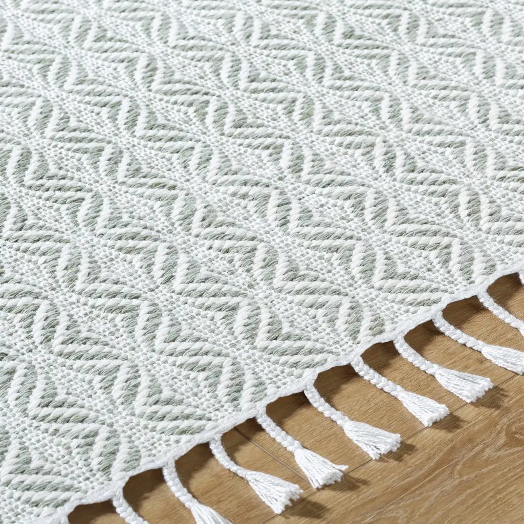 Collection: Anelia Colors: Sage, Ivory, Green Construction: Hand Woven Material: 100% Recycled PET Yarn Pile: No Pile Styles: Transitional,Traditional Made In: India Thickness: 0.3" Fringe Length: 4" Price Range: $$$$$ (Affordable)