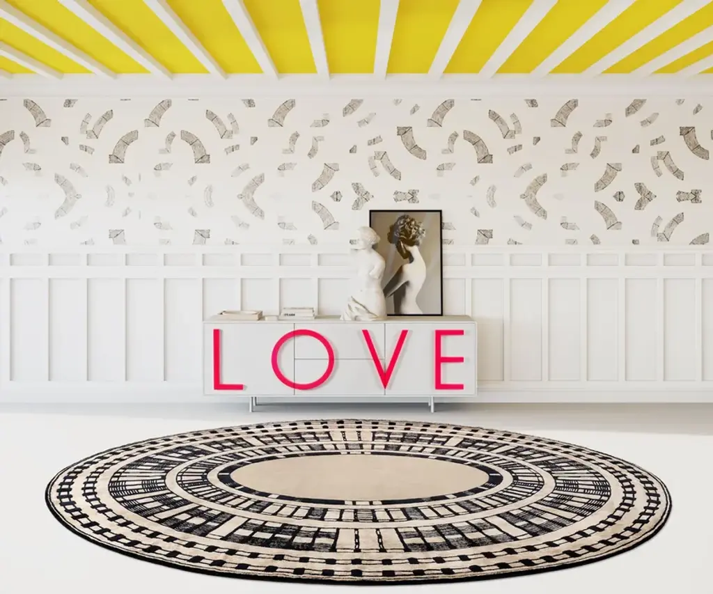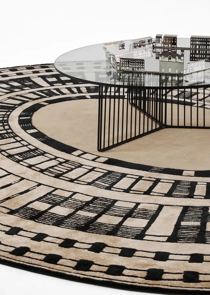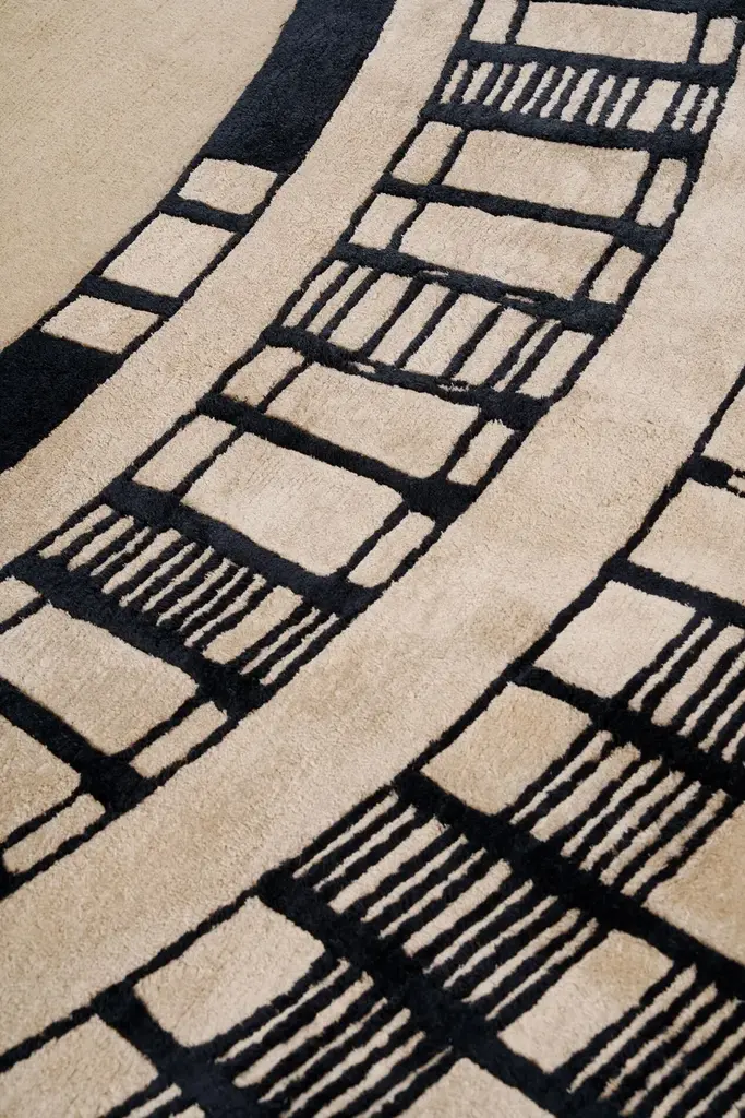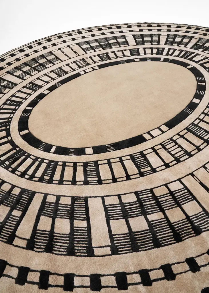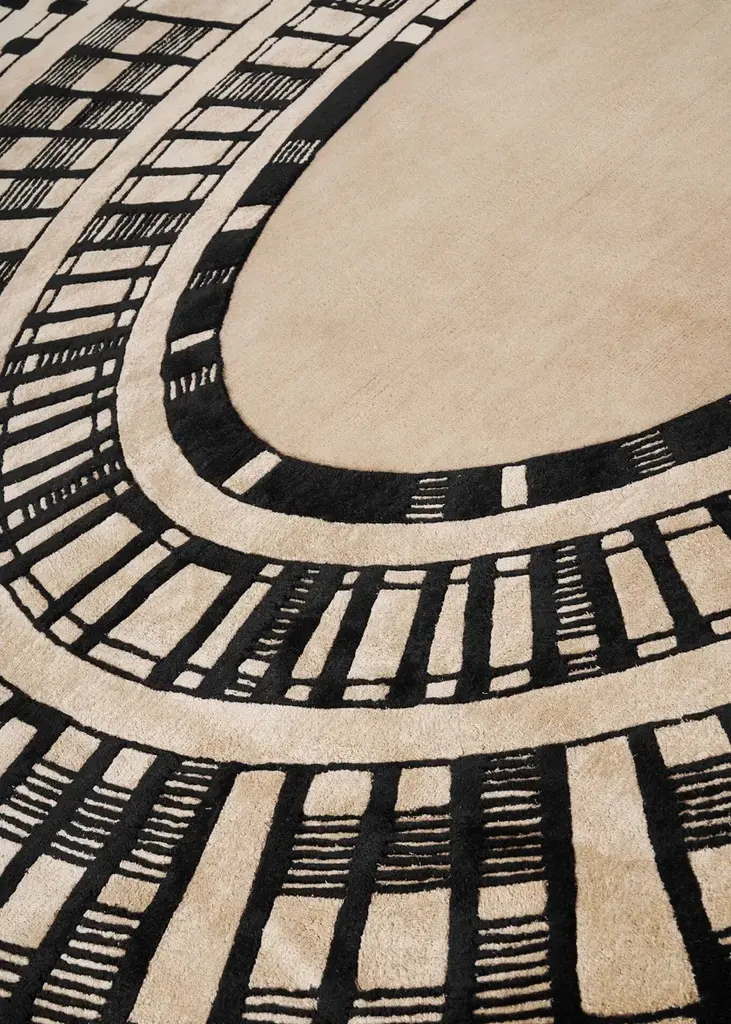 Material: Wool, SilkKnot Density: 80 knots/inch²Pile Height: 5-10mmTechnique: Hand-knottedCustom sizes and colors on requestThe "Monumenti" hand-knotted rug collection pays homage to the ancient architecture that shaped our past. With their visual abstractions of shapes and yellowish color, these ancient floor plans of famous buildings remind us of the importance of preserving our historical memory. As designer Fabio Novembre says, "A form of respect for our roots is transformed into soft surfaces within our homes, on which new steps are taken between past and future." This collection includes rugs with non-standard shapes where the border follows the original geometric form of the architectural plan.Architectural plan of the famous Reggia Di Caserta, the Reggia rug comprises 61% silk and 39% wool, with a knot density of 80 knots/inch² and a 5 to 10 mm pile height.
