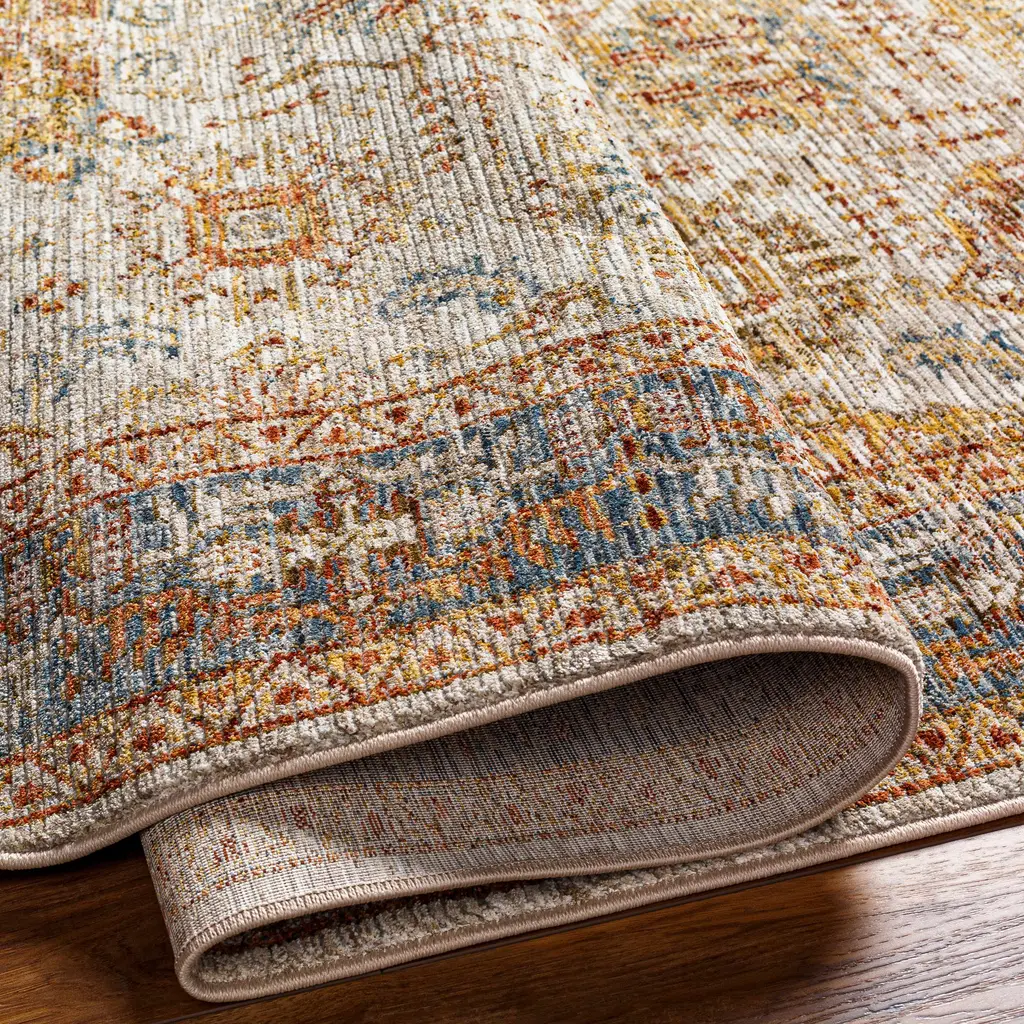 Ange Tan & Blue Rich Textured Traditional Rug - 7'10" Round