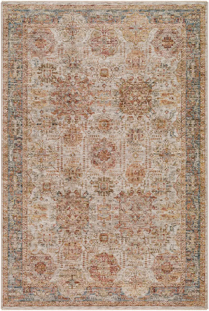 Collection: Ange Colors: Sage, Tan, Mustard, Rust, Light Sage, Navy Construction: Machine Woven Material: 100% Polyester Pile: Medium Pile Pile Height: 0.31" Styles: Traditional Made In: Turkey Thickness: 0.35" Fringe Length: 0.4" Price Range: $$$$$ (Affordable)
