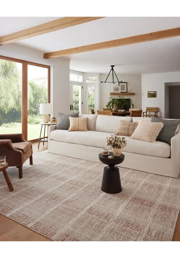 The Ember Collection by Angela Rose x Loloi is a modern flatweave area rug with a timeless plaid pattern that adds depth and coziness to any living room, bedroom, dining room, or hallway. Ember is power-loomed of 100% space-dyed polyester, a durable construction that creates a nuanced depth of color, available in a range of neutral palettes. Made in Turkey and carries the OEKO-TEX label, ensuring its materials don't contain harmful substances.