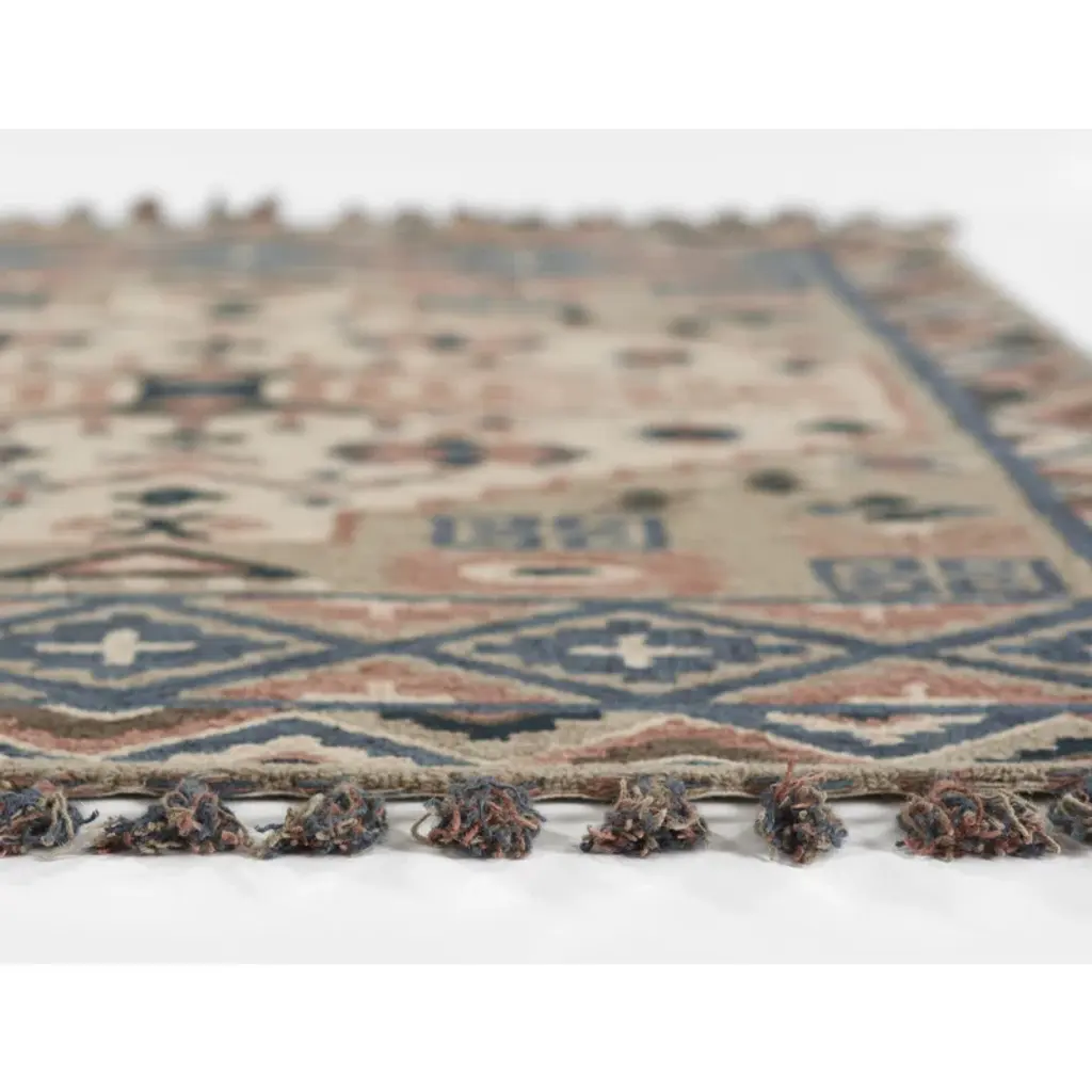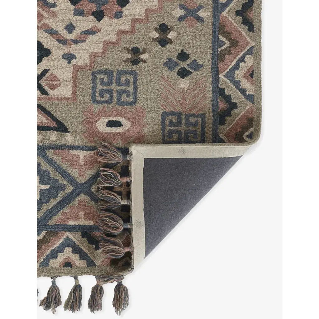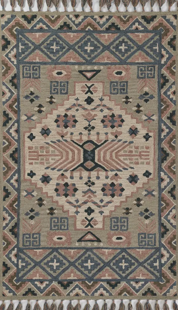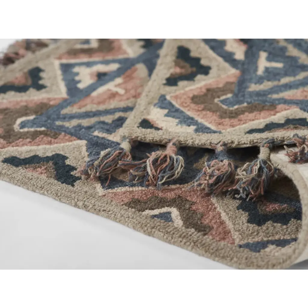 Southwestern motifs get a modern edge in the graphic design elements of this decorative area rug. Available in a stunning array of tribal patterns, each floorcovering features a geometric repeat inspired by iconic tribal prints. Diamonds, crosses, medallions, and stars form repeating stripes and intricate linework while tassels at the top and bottom of the rug accentuate the exotic vibe with a fun, fringed border. Exceptional in style and composition, each rug is hand-tufted from natural wool threads.