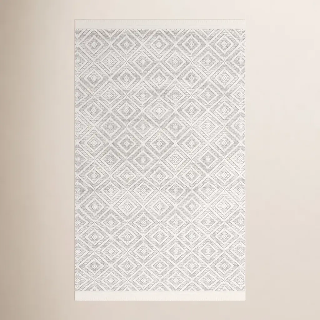 This clever take on a classic diamond pattern in a durable, washable indoor/outdoor jacquard weave made of recycled materials is an instant style star. Due to the handmade nature, variations in color are expected.Made of 100% PET, a polyester fiber made from recycled plastic bottles.